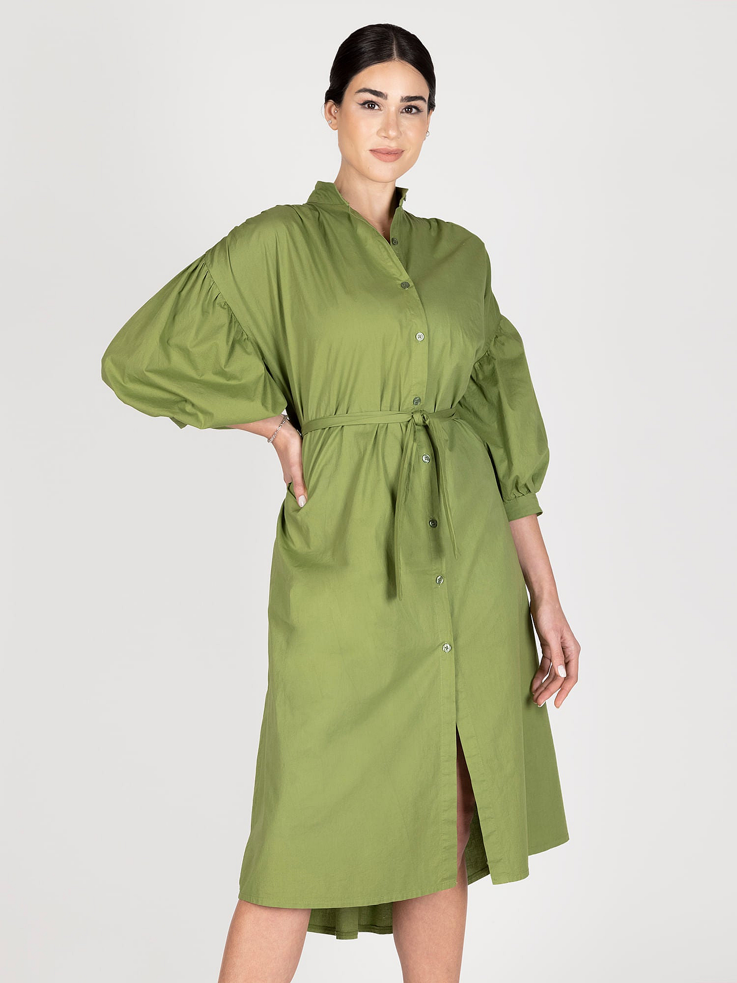 Vestido Mangas Globo Verde LineatreDescripción