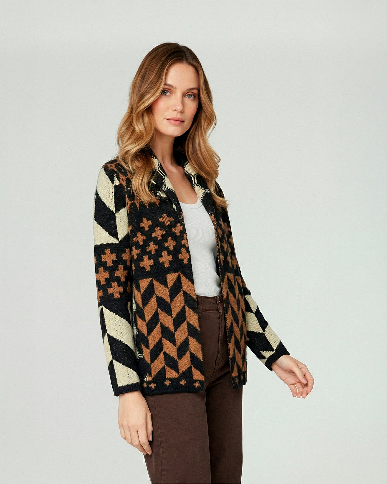 Cardigan Mujer Luciana Relaxed Cuello En V Manga Suelta Negro LineatreDescripción