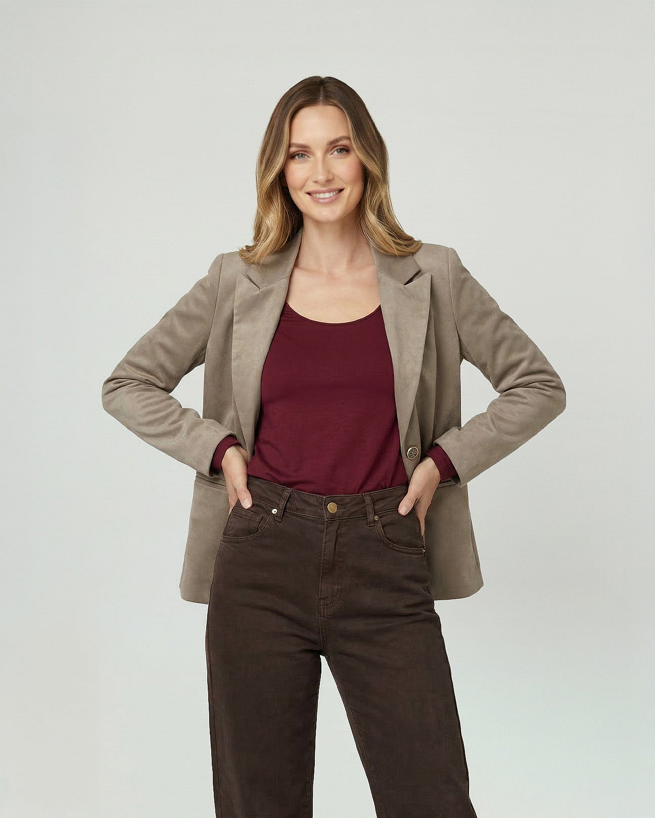 Chaqueta Mujer Isidora Regular Cuello Con Solapa Manga Suelta Fango Lineatre