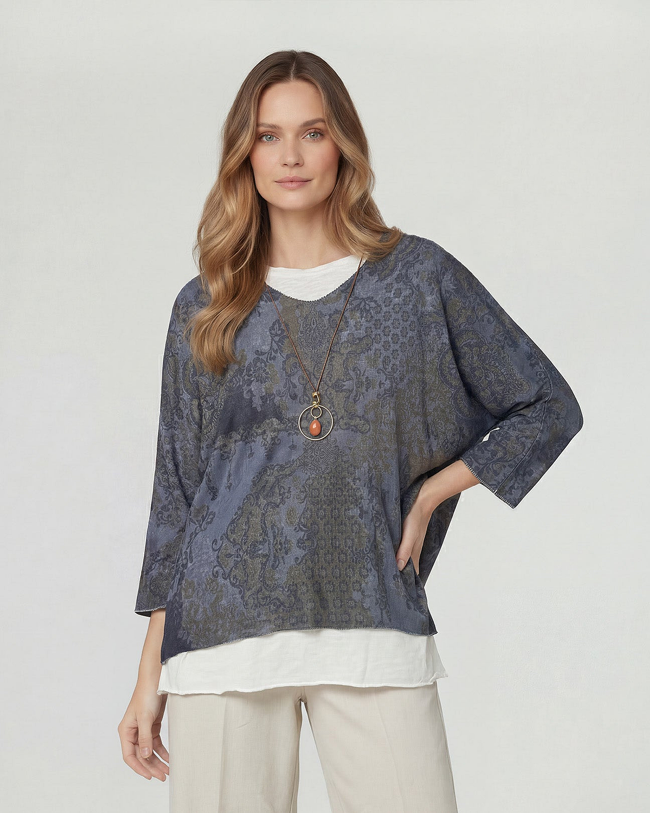 Polera Mujer Diana Relaxed Cuello En V Manga Caída Navy LineatreDescripción