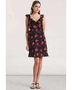 Vestido Corto, Volantes, Estampado NegroDescripción