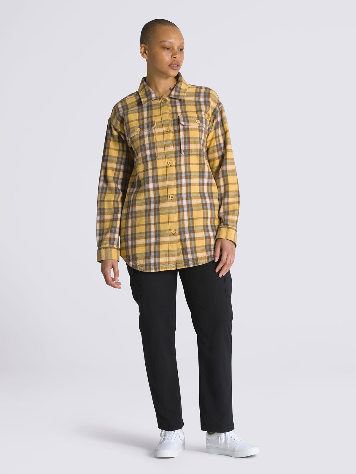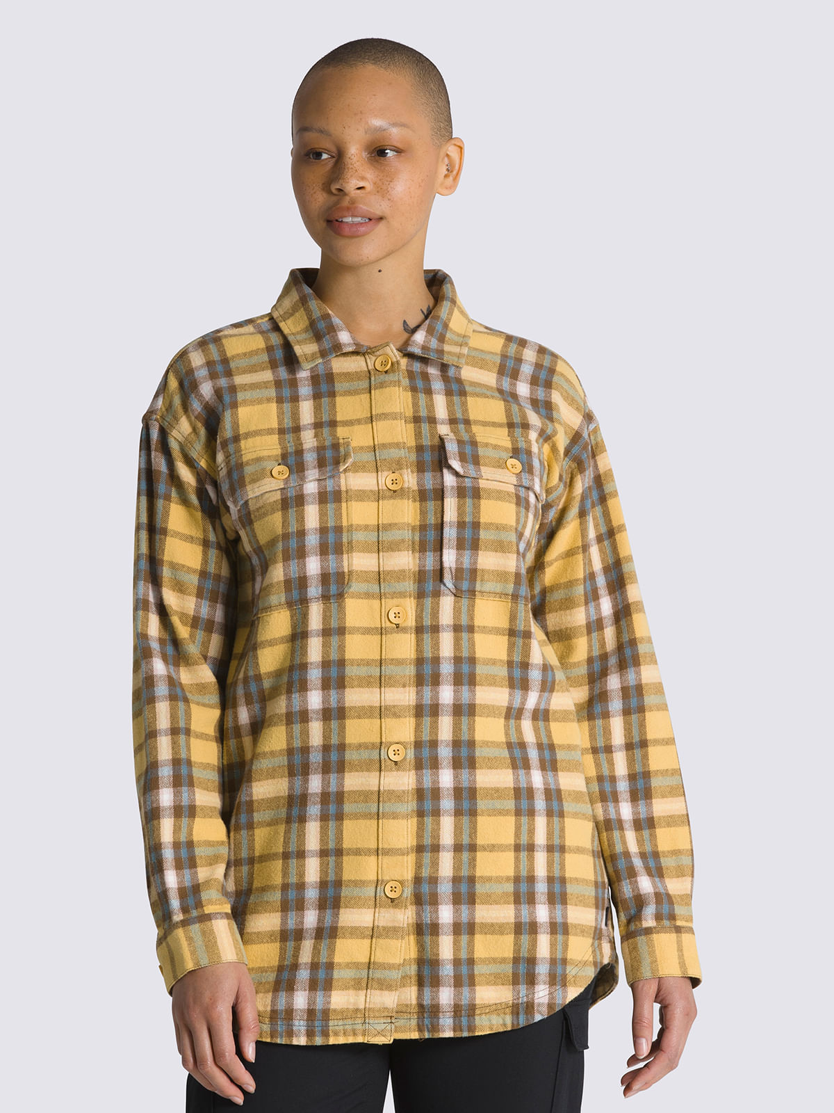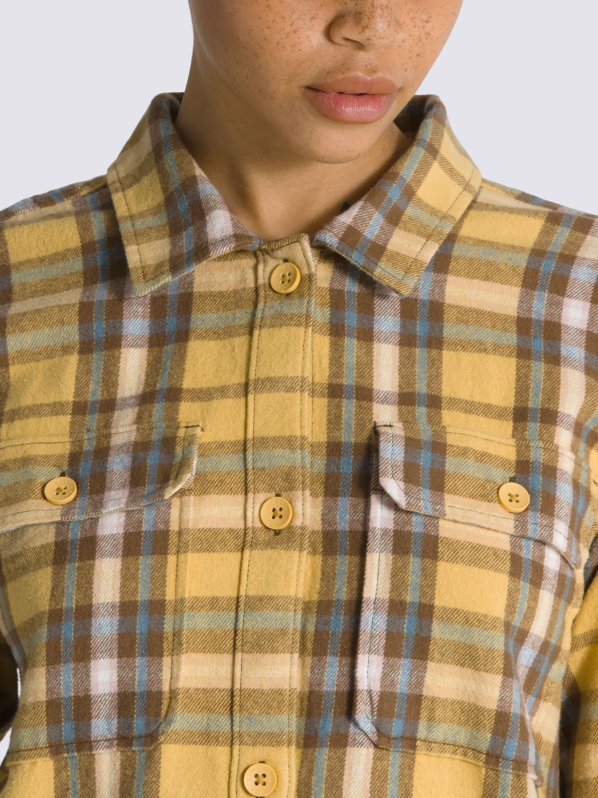 Blusa M/L Mujer Amelia Flannel Top Café VansTalles disponibles