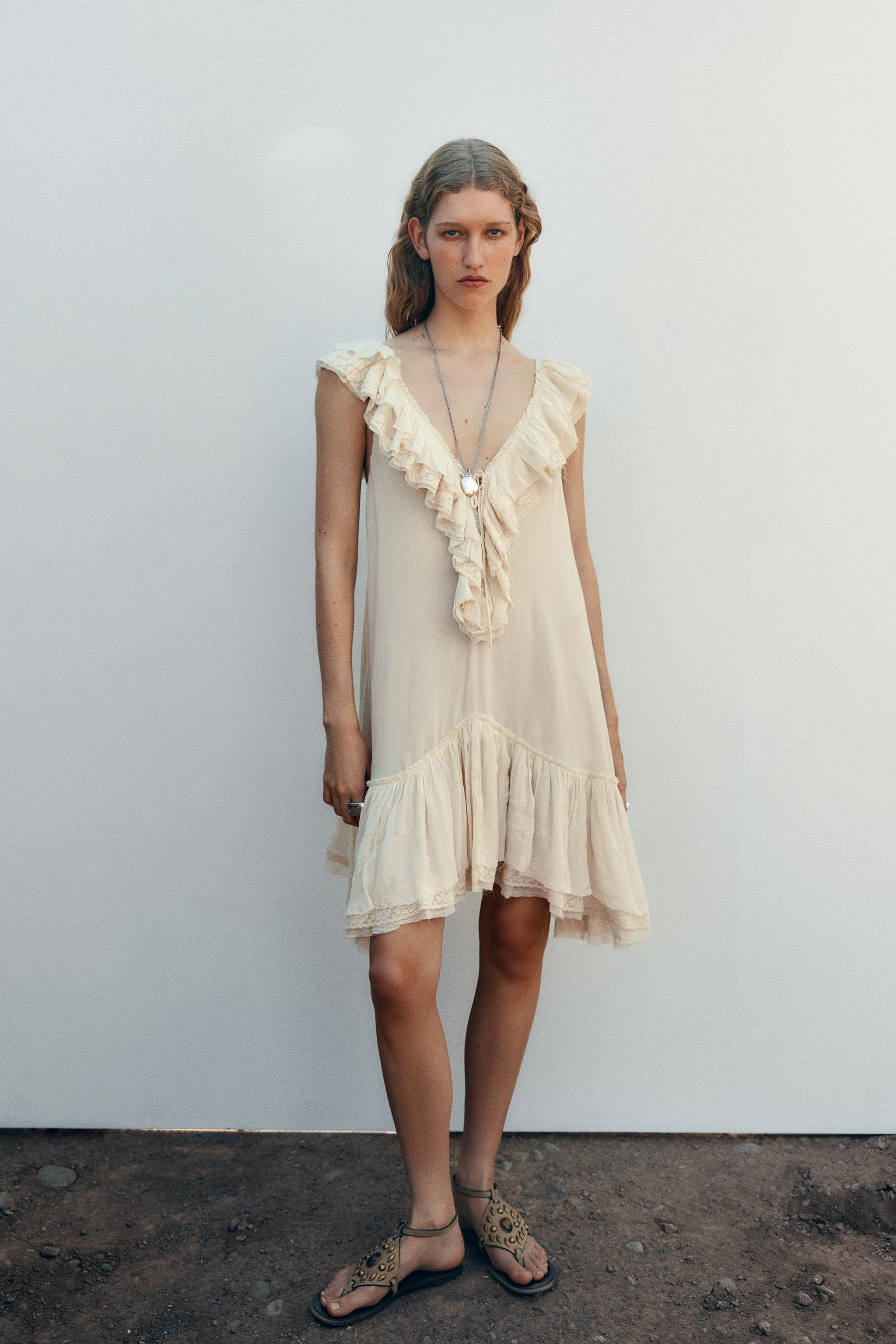 Vestido Volantes Encaje Zw Collection