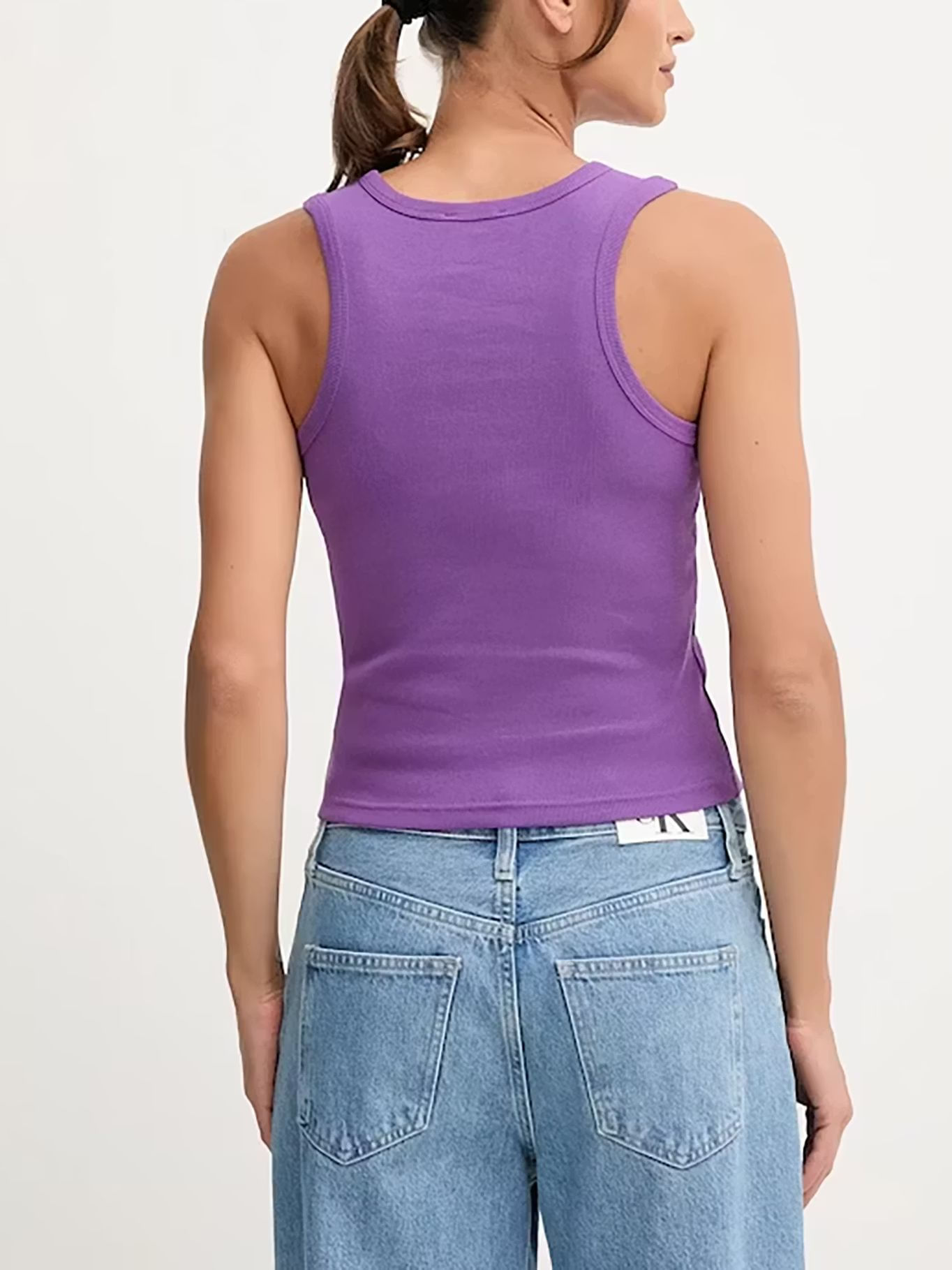 Camiseta Morado De Tirantes Acanalada Con Etiqueta De Monograma