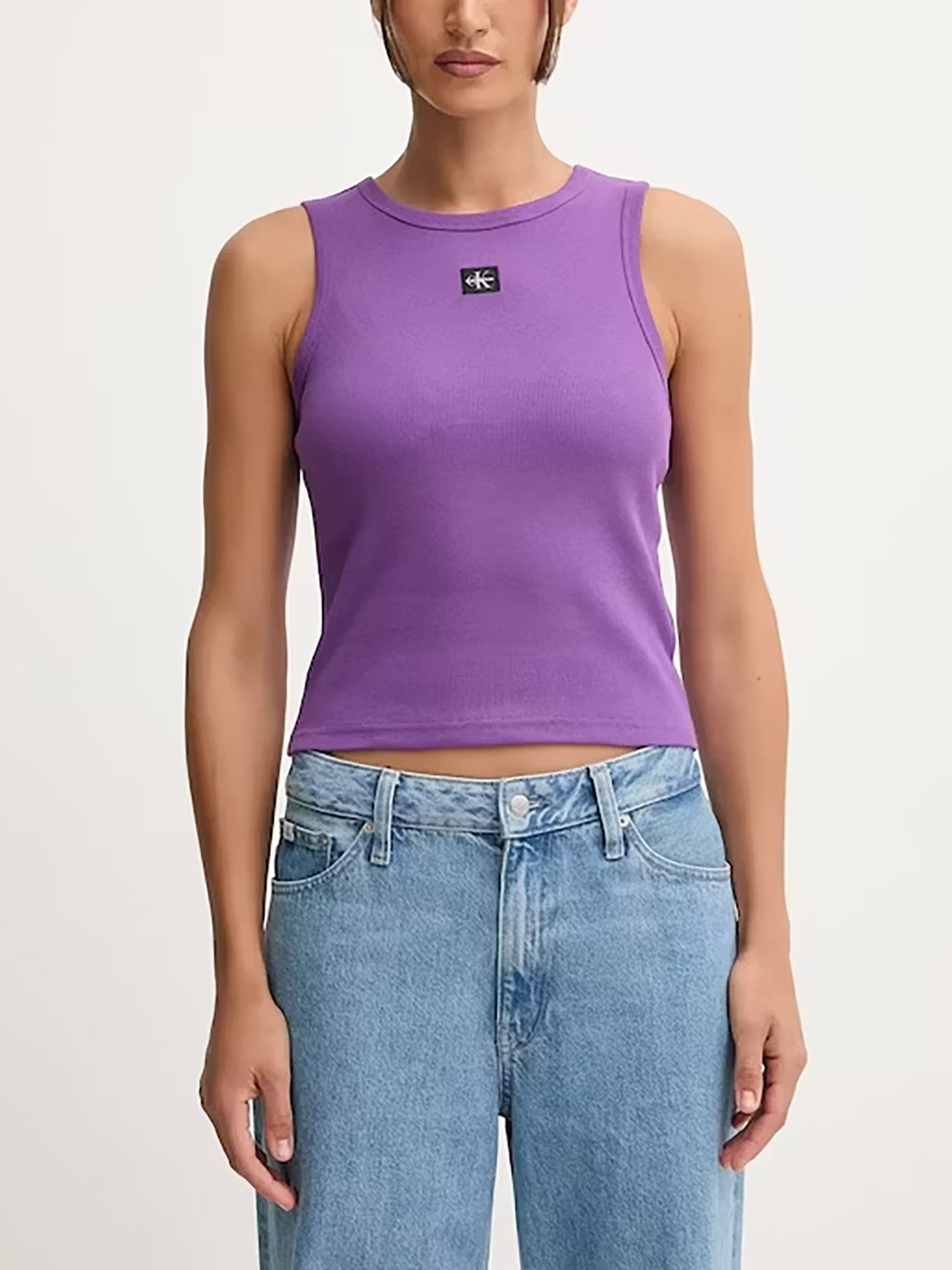 Camiseta Morado De Tirantes Acanalada Con Etiqueta De MonogramaTalles disponibles