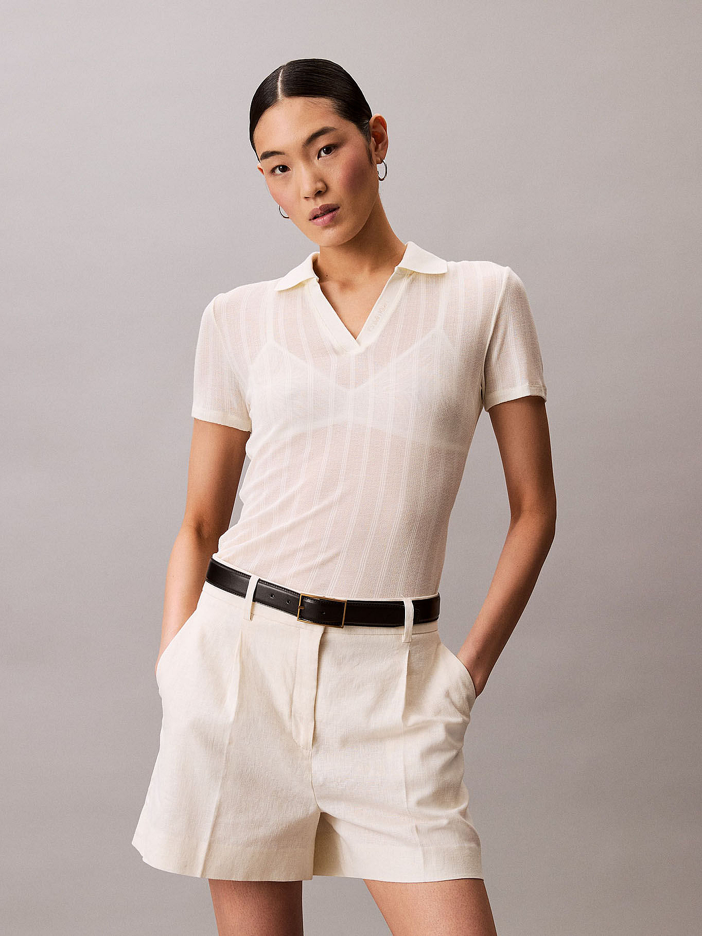 Polo Beige De Punto Pointelle
