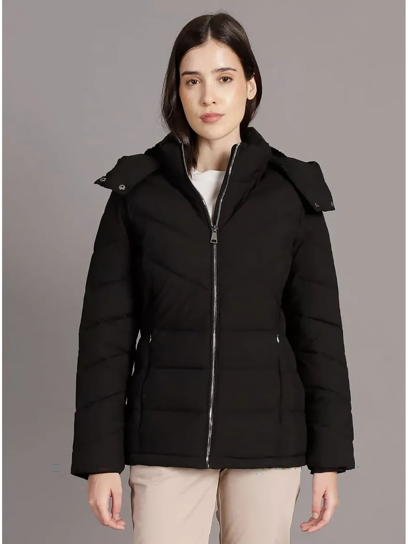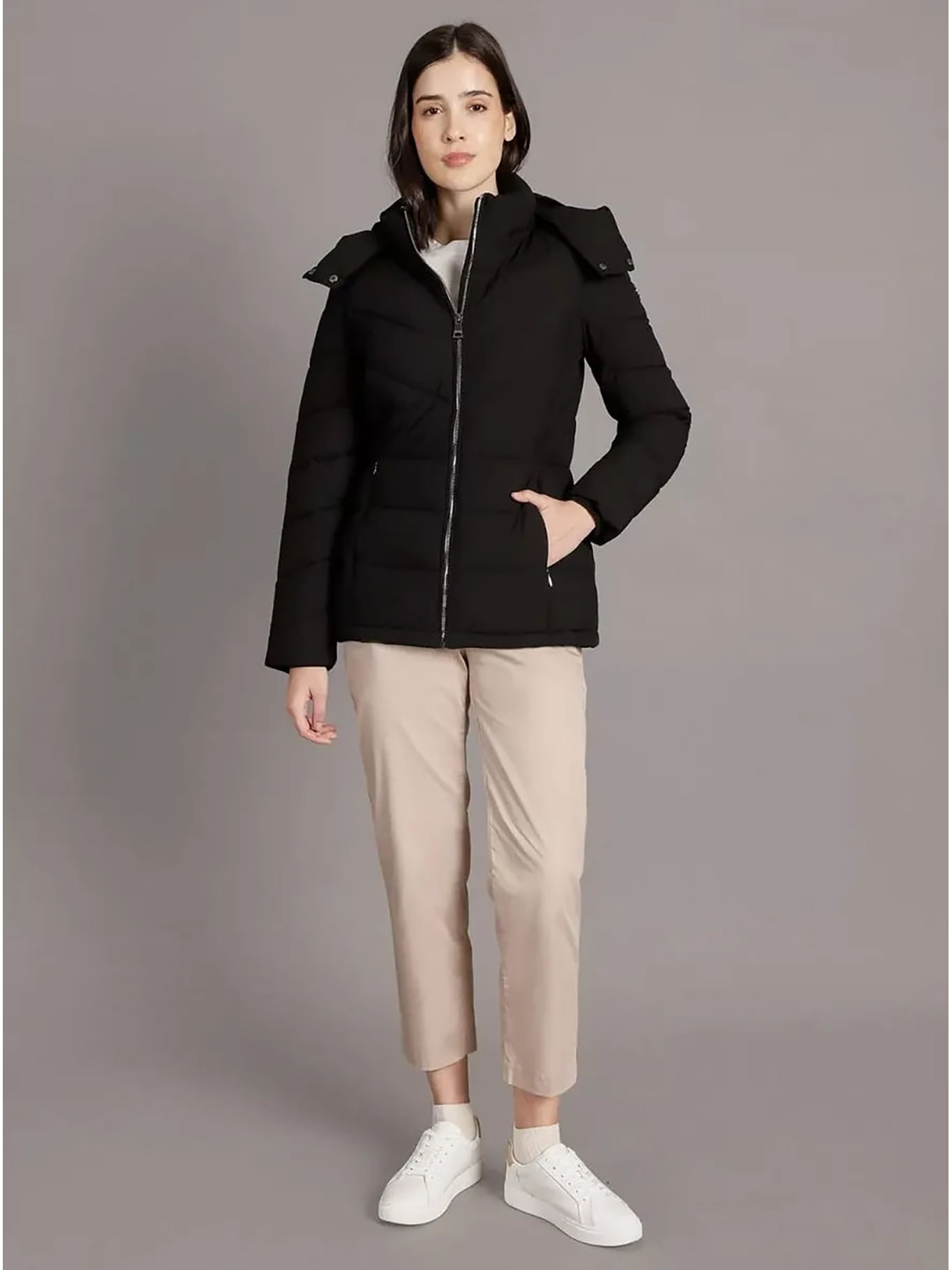 Chaqueta Negra Puffer Con Capota