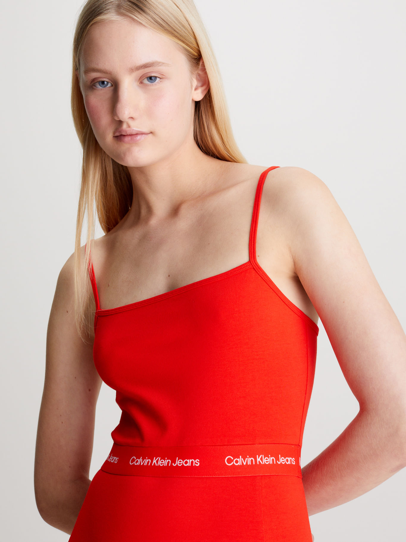 Vestido Rojo De Tirantes Con Logo Repetitivo