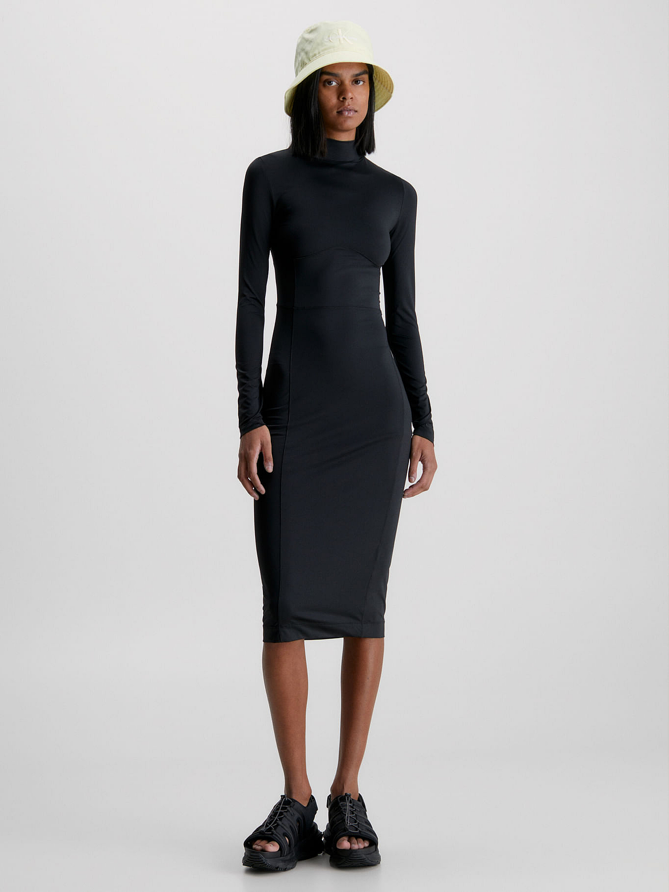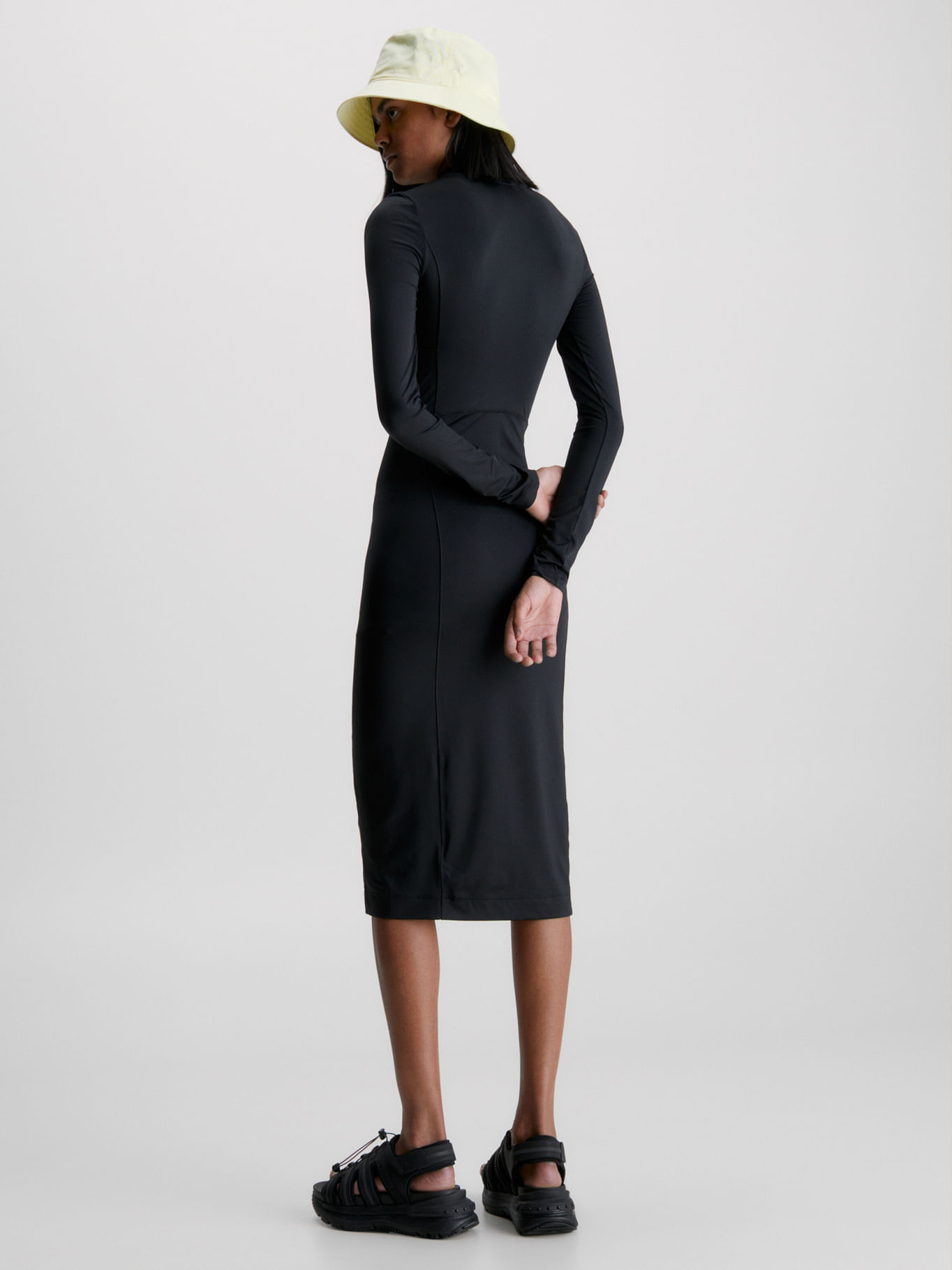 Vestido Negro Midi Slim De Manga Larga Elástico