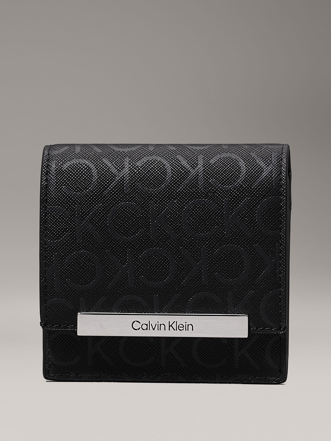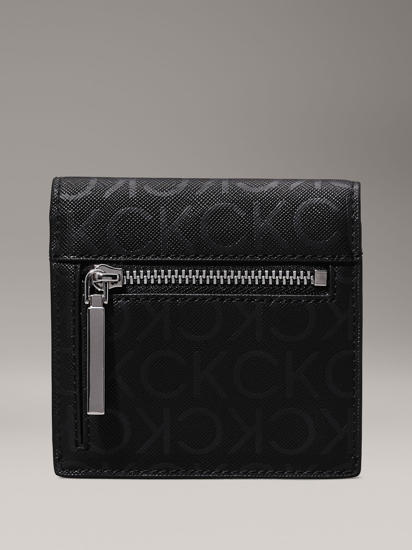 Billetera Negra De Plegado Triple Con Logo Pequeño