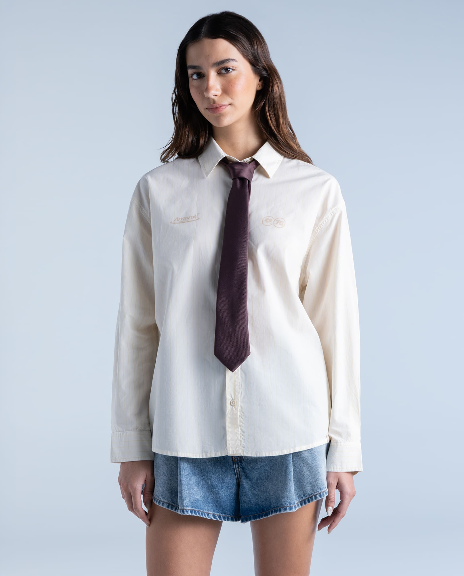Camisa Regular En Lyocell Rayas Finas