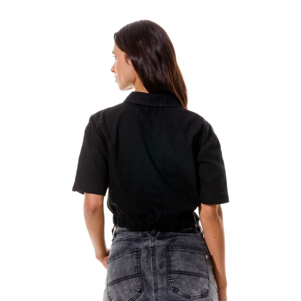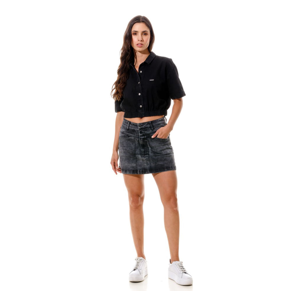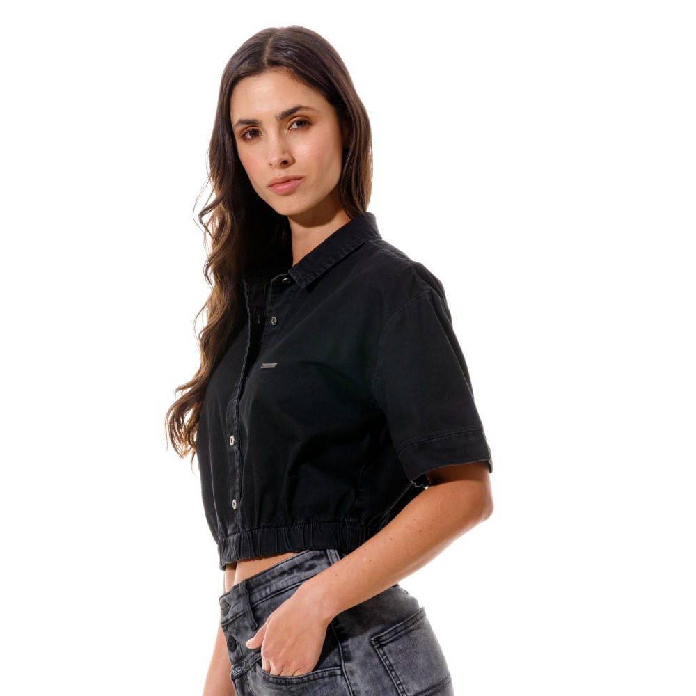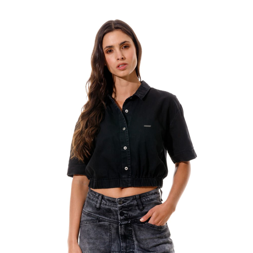 Camisa Manga Corta Denim Para Mujer Ailé