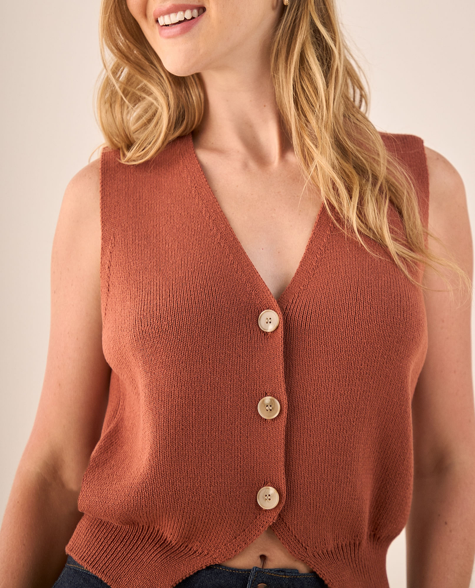 Chaleco Tejido Naranja Terracota Con Botones