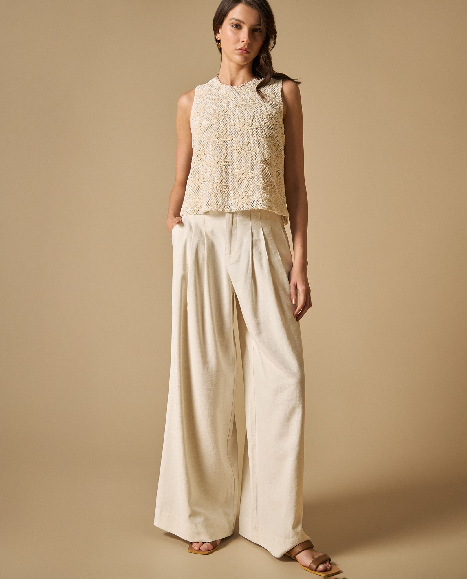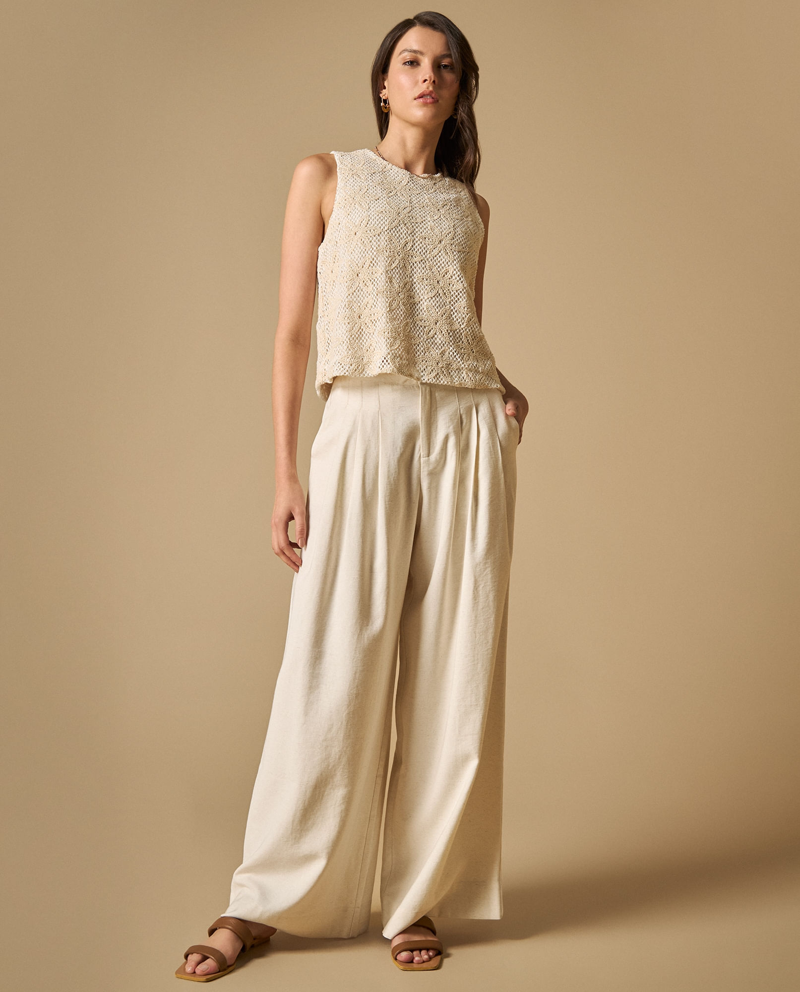 Pantalón Palazzo Talle Alto Con Bolsillos Para MujerTalles disponibles