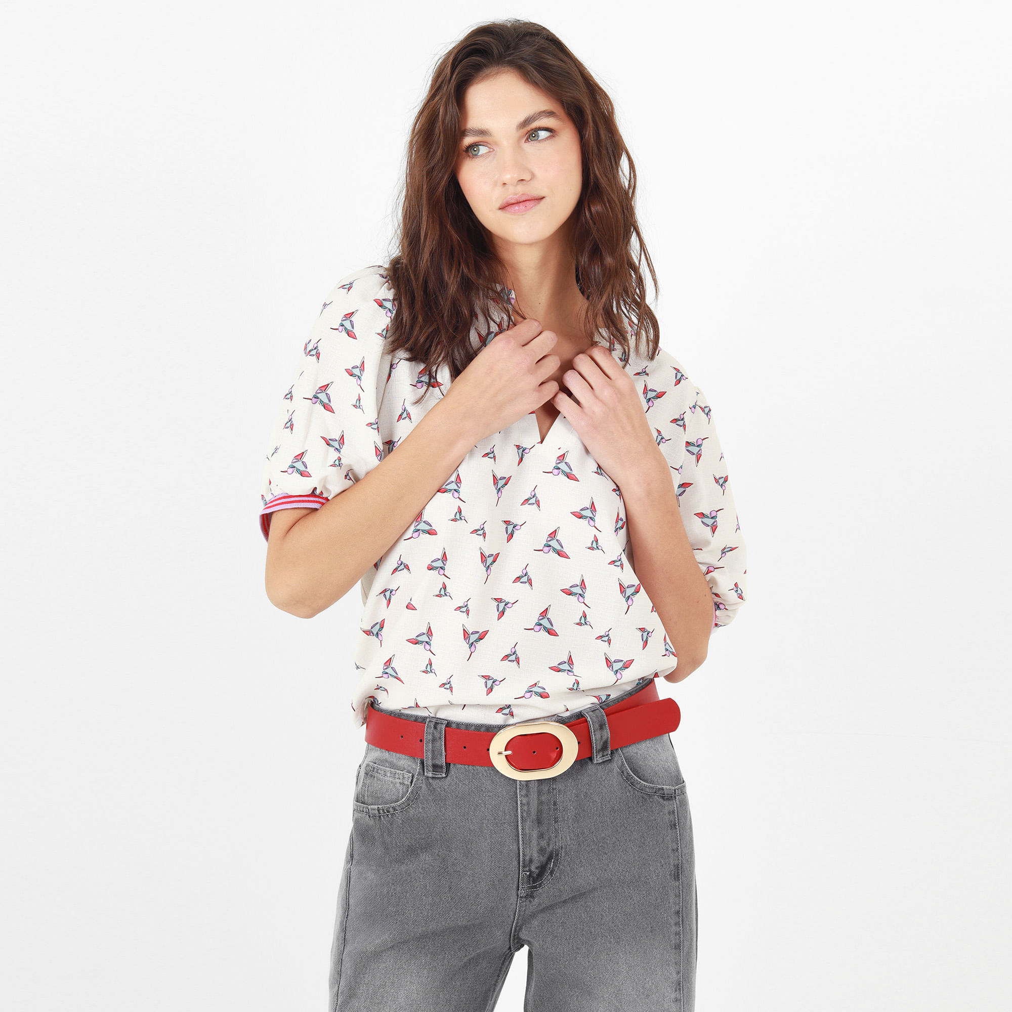 Blusa Cuello V Manga Corta