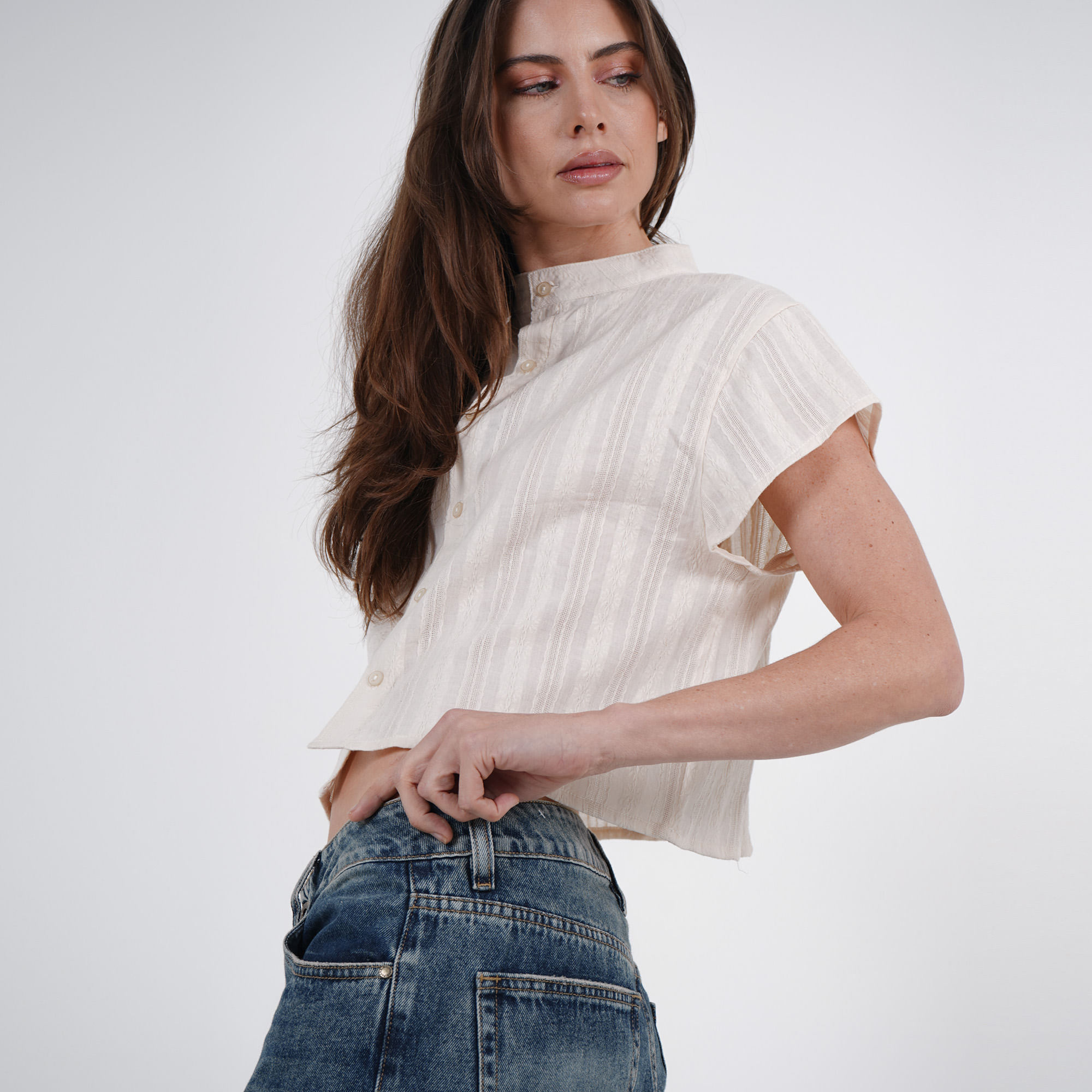 Blusa Cuello Alto Manga Corta