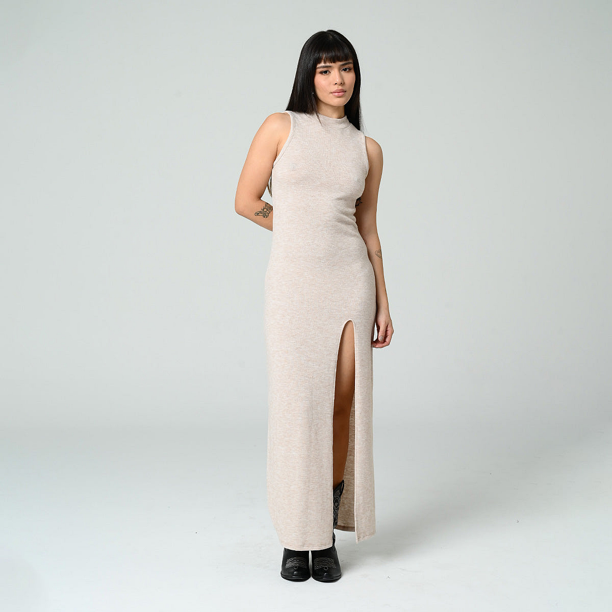 Vestido Ajustado Largo Manga Sisa Arenas