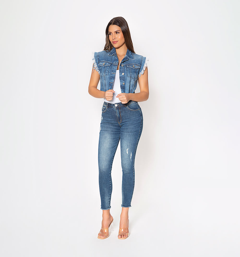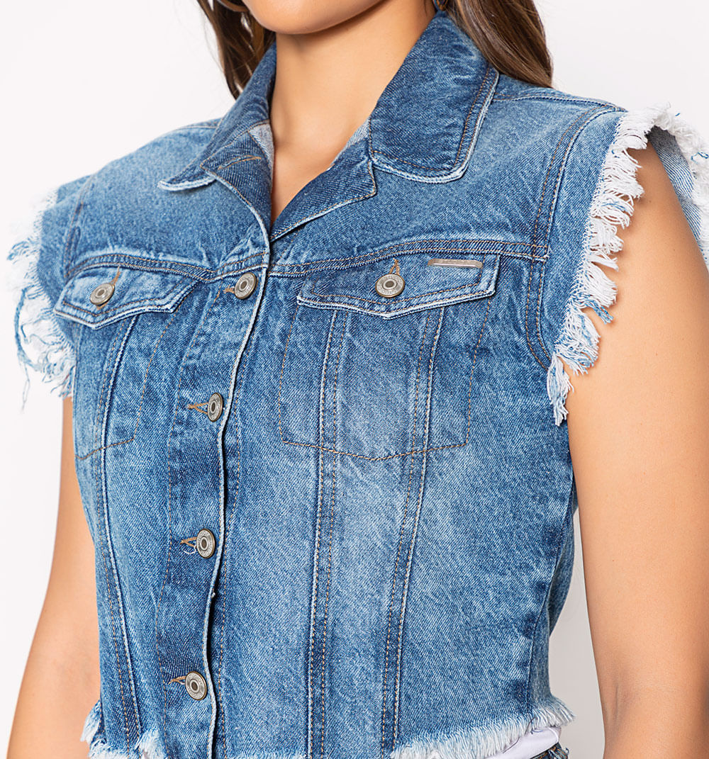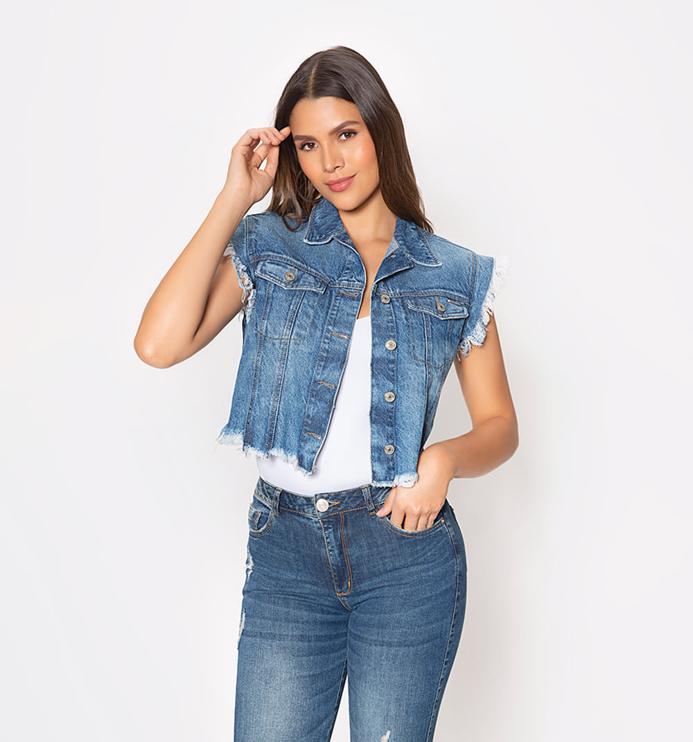 Chaleco Corto Denim Con Mangas Rusticas