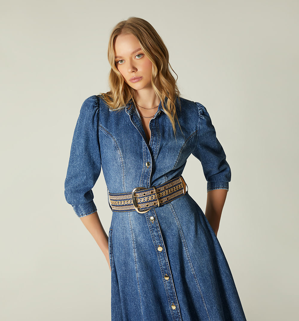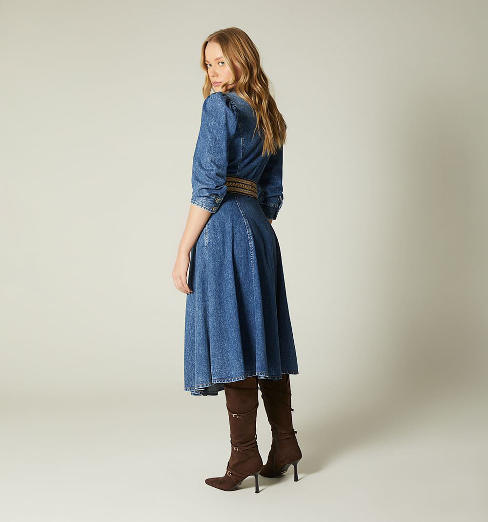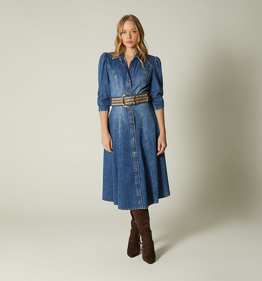 Vestido Midi Nesgas Manga 3/4 Para Mujer