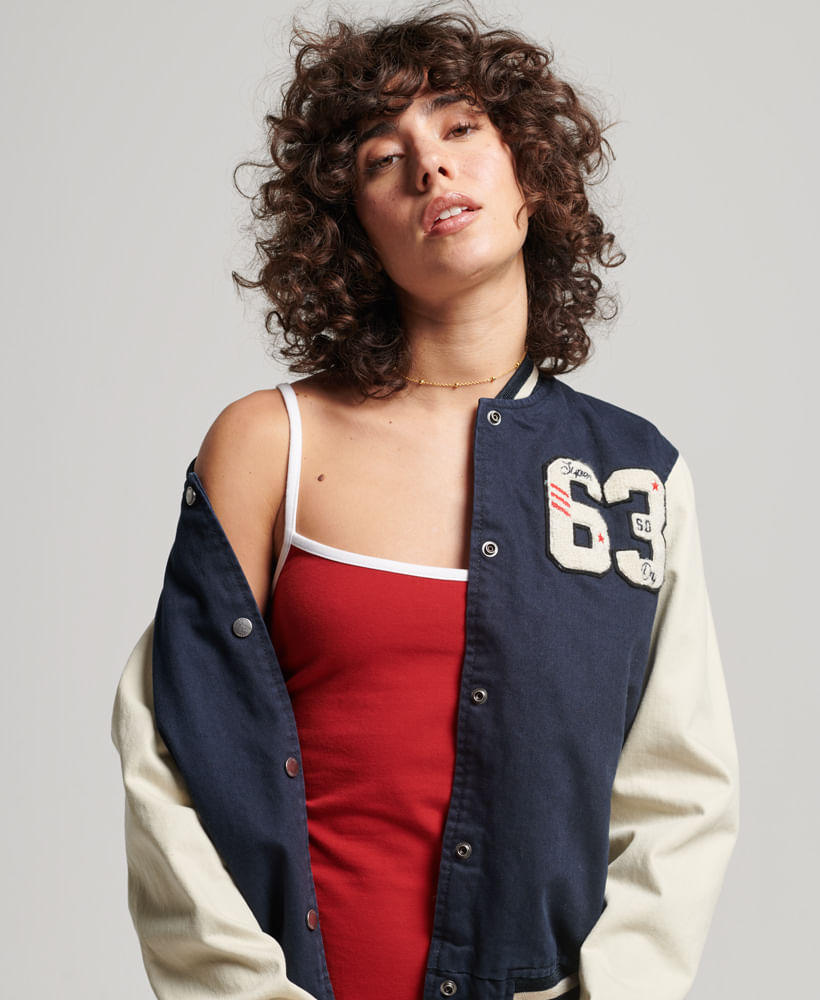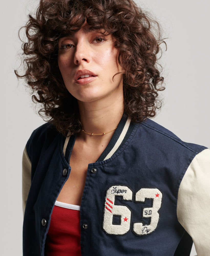 Chaqueta Denim Para Mujer Vintage Varsity
