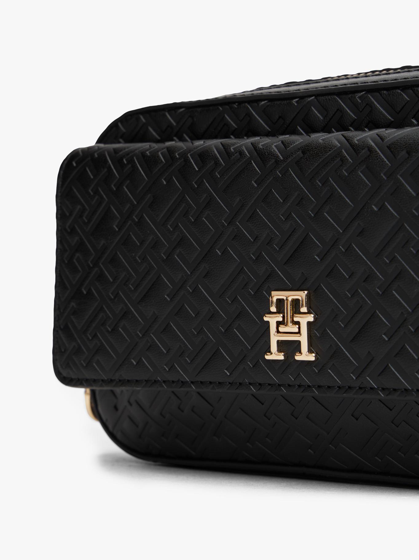 Bolso Negro Camera Bag Con Textura De Monograma Th