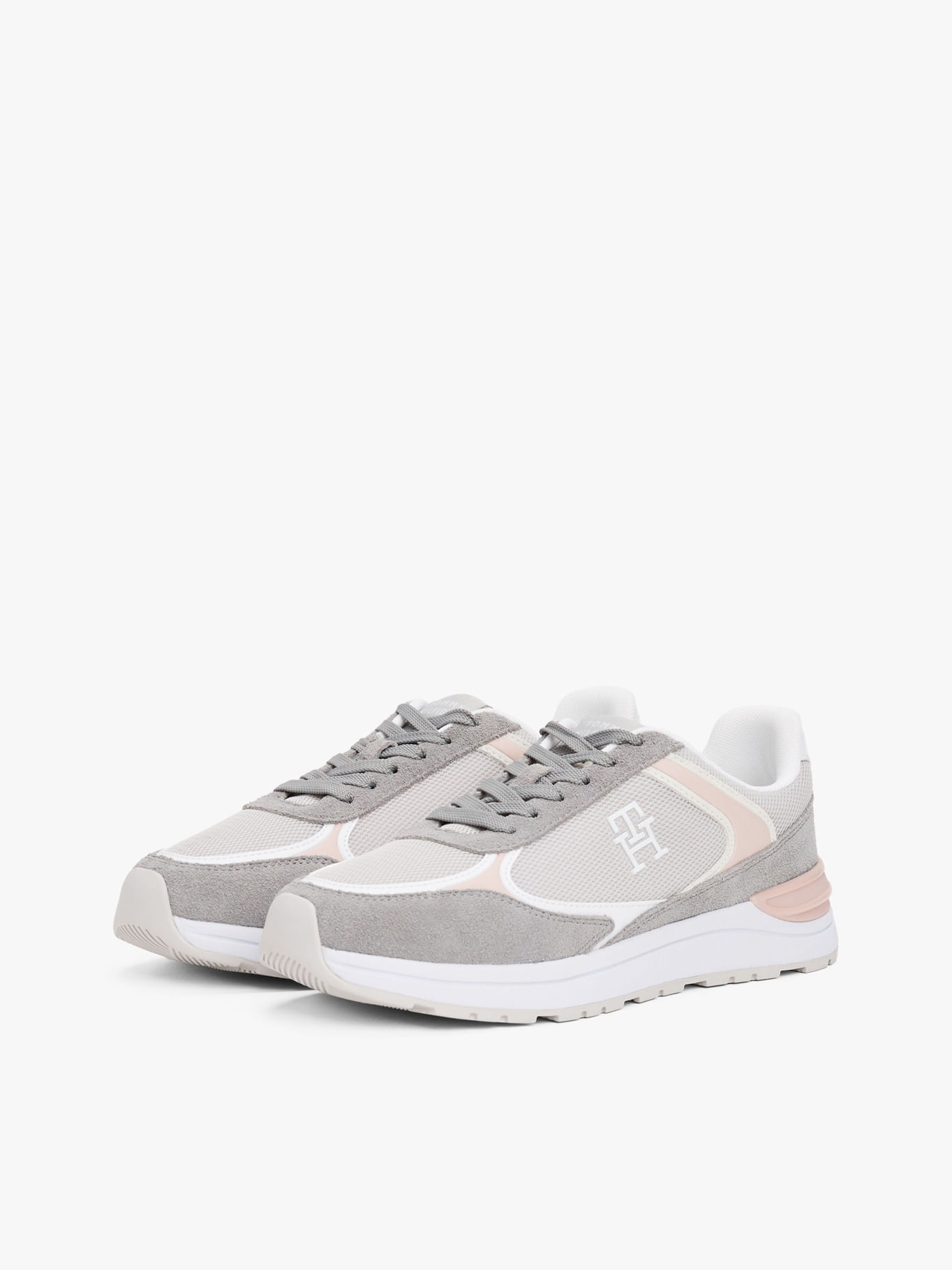 Tenis Gris Con Mezcla De TexturasTalles disponibles