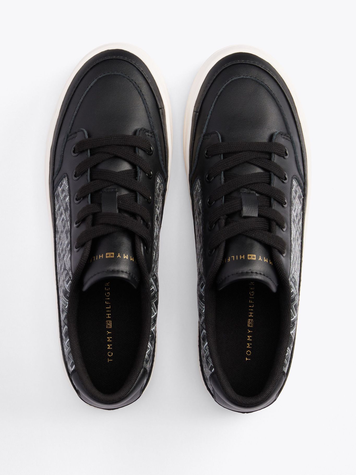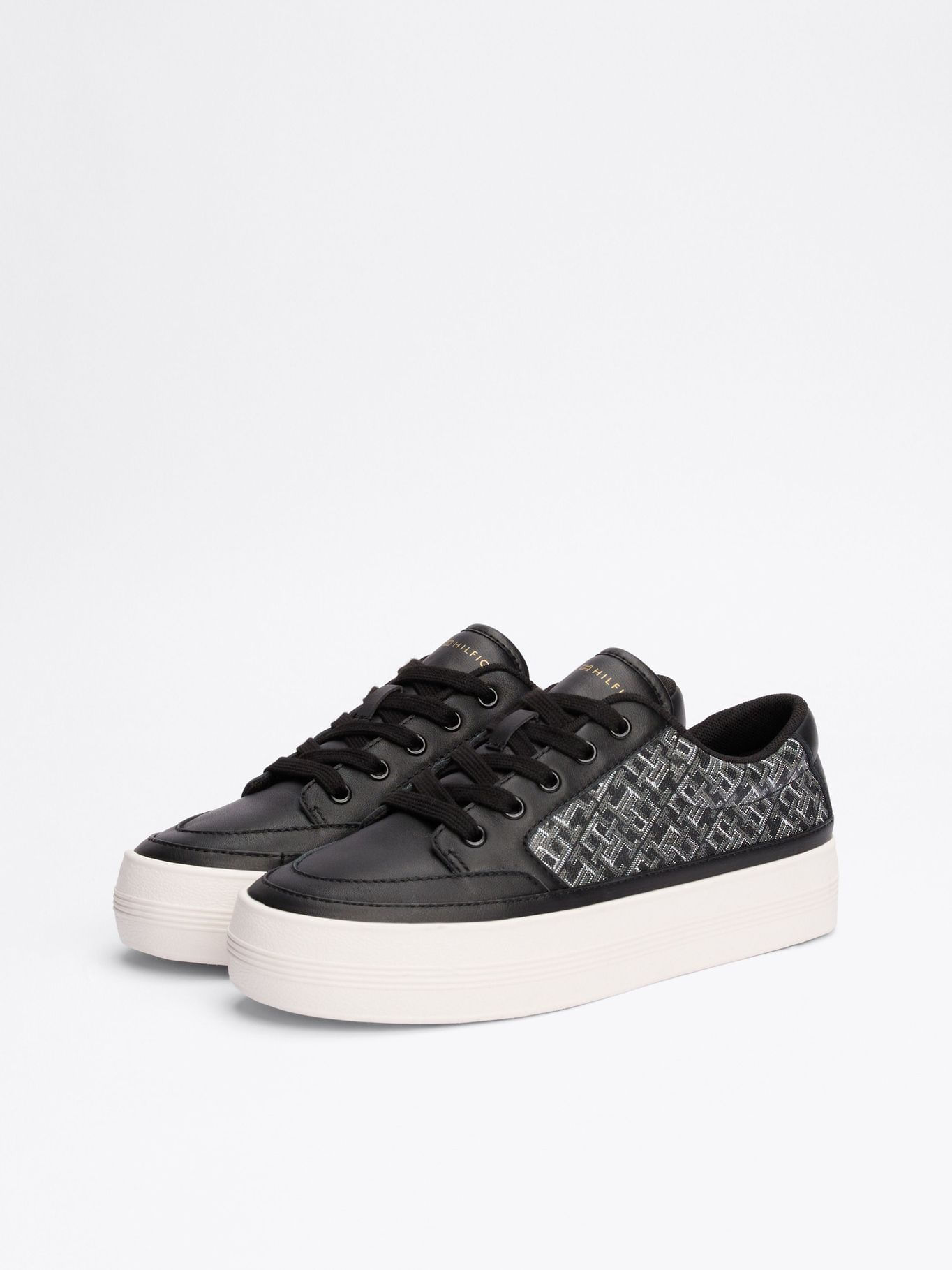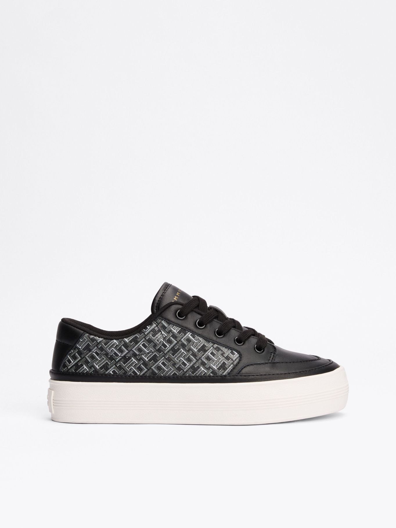Tenis Negro De Cuero Con Monogramas Th