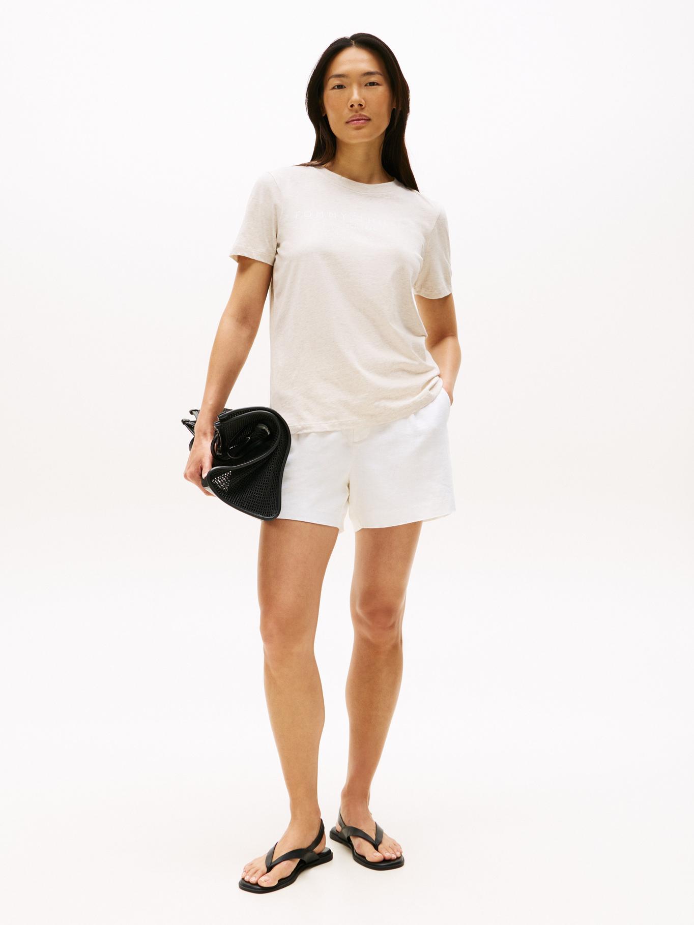 Camiseta Blanca Con Cuello Redondo Y Logo DistintivoTalles disponibles