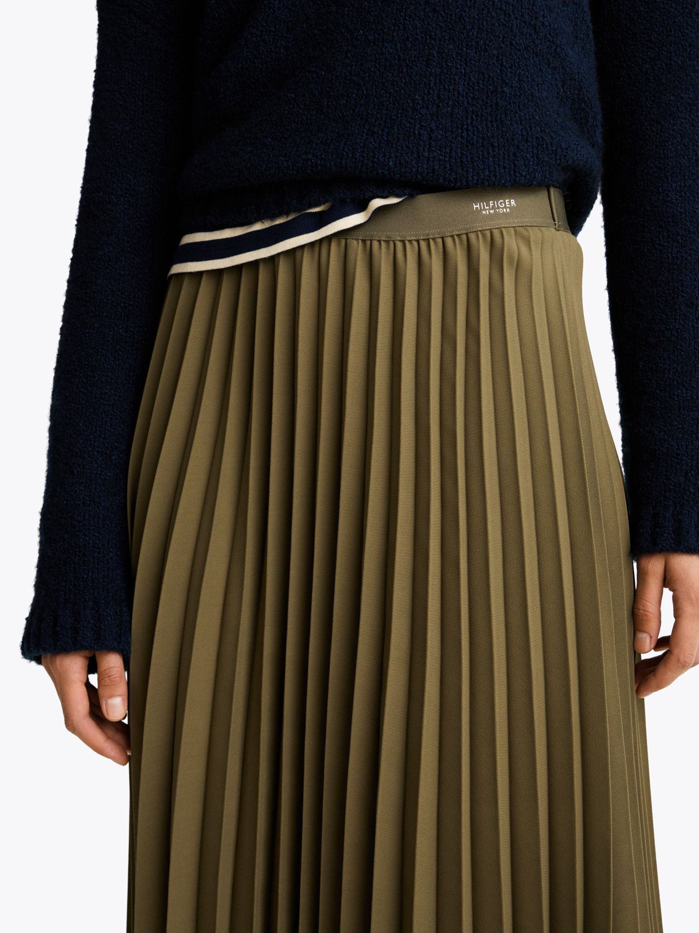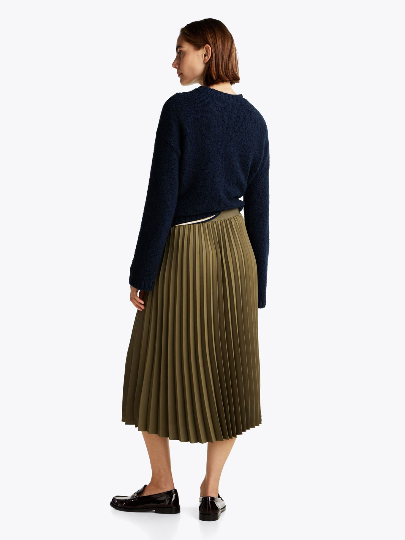 Falda Verde Midi Plisada Con Logo En CinturaTalles disponibles