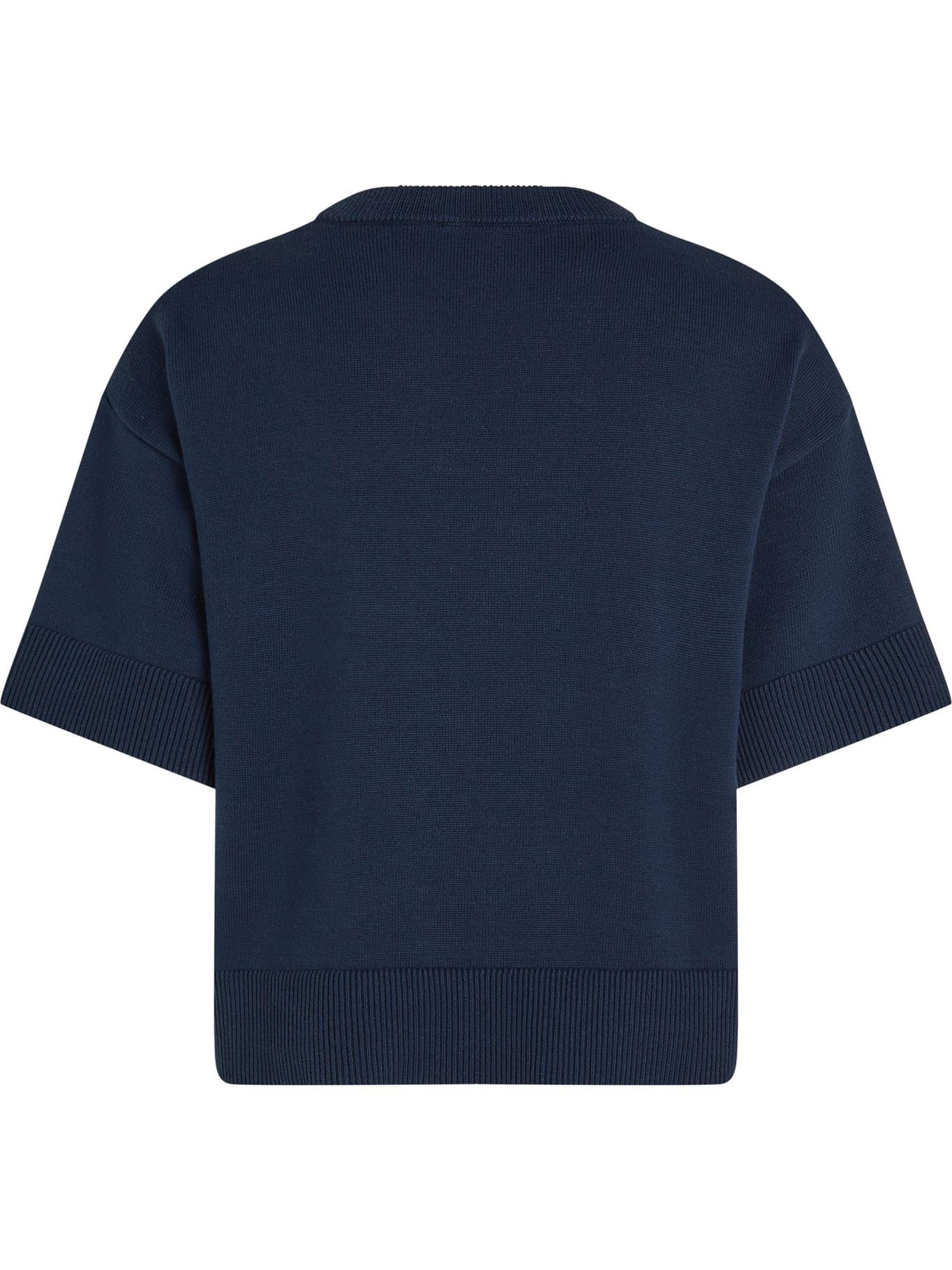 Saco Azul Tejido Cropped De Cuello RedondoTalles disponibles