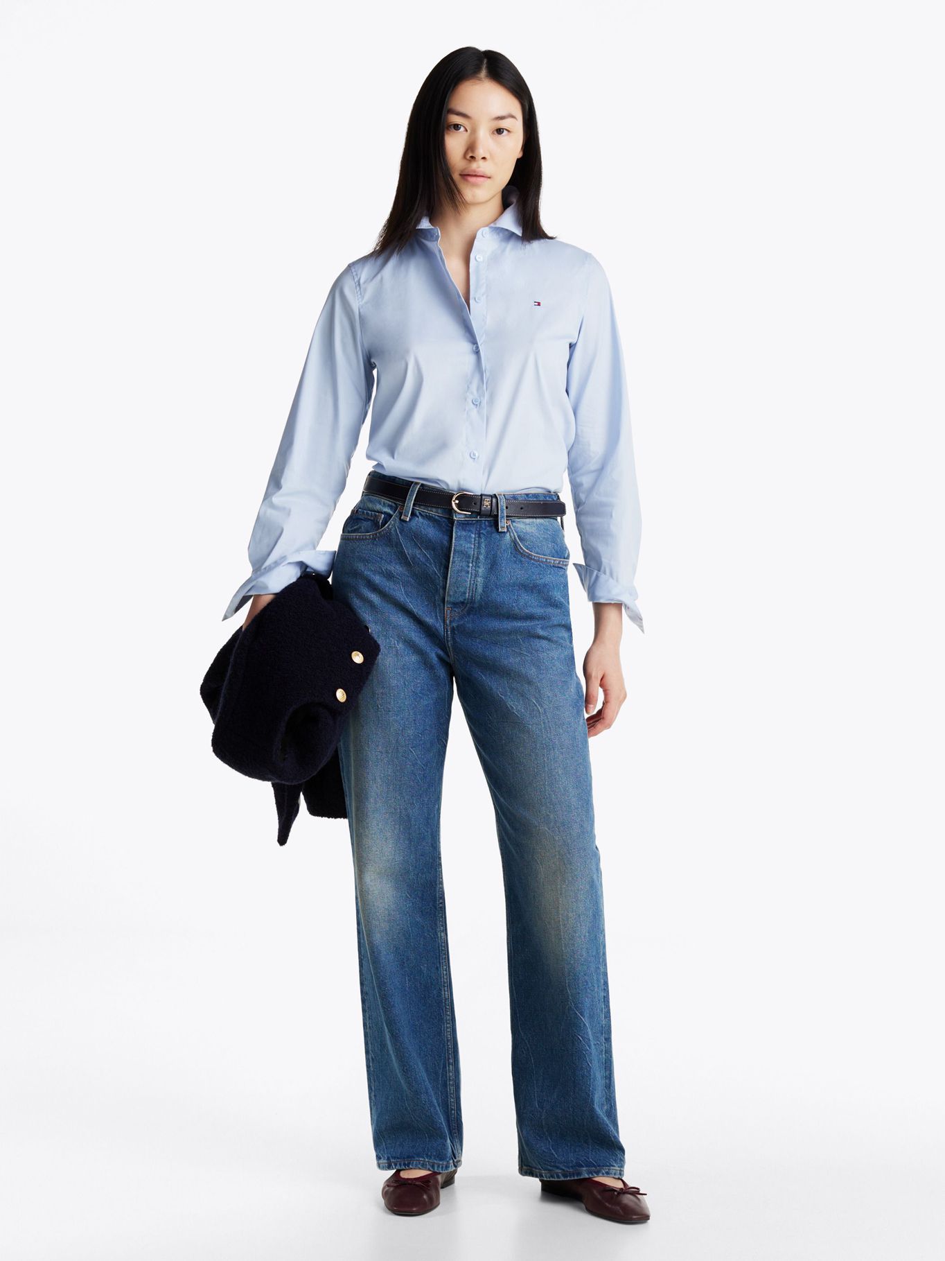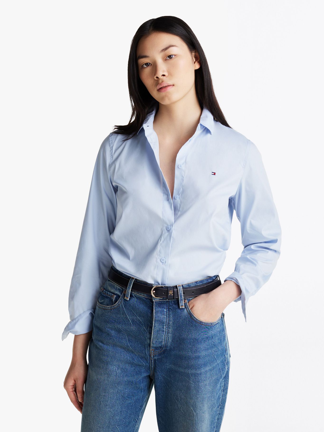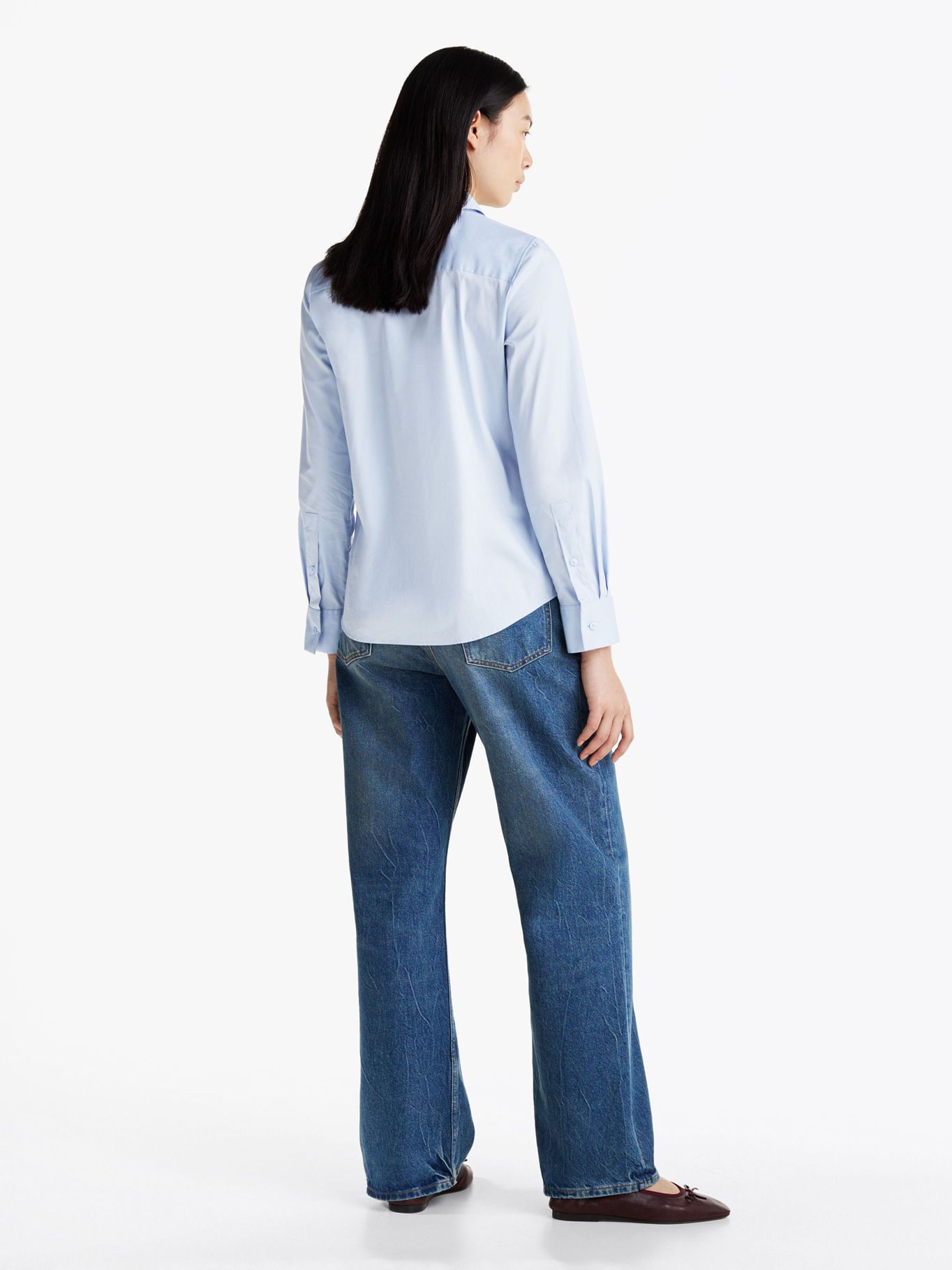 Camisa Celeste De Popelín De Corte RegularTalles disponibles