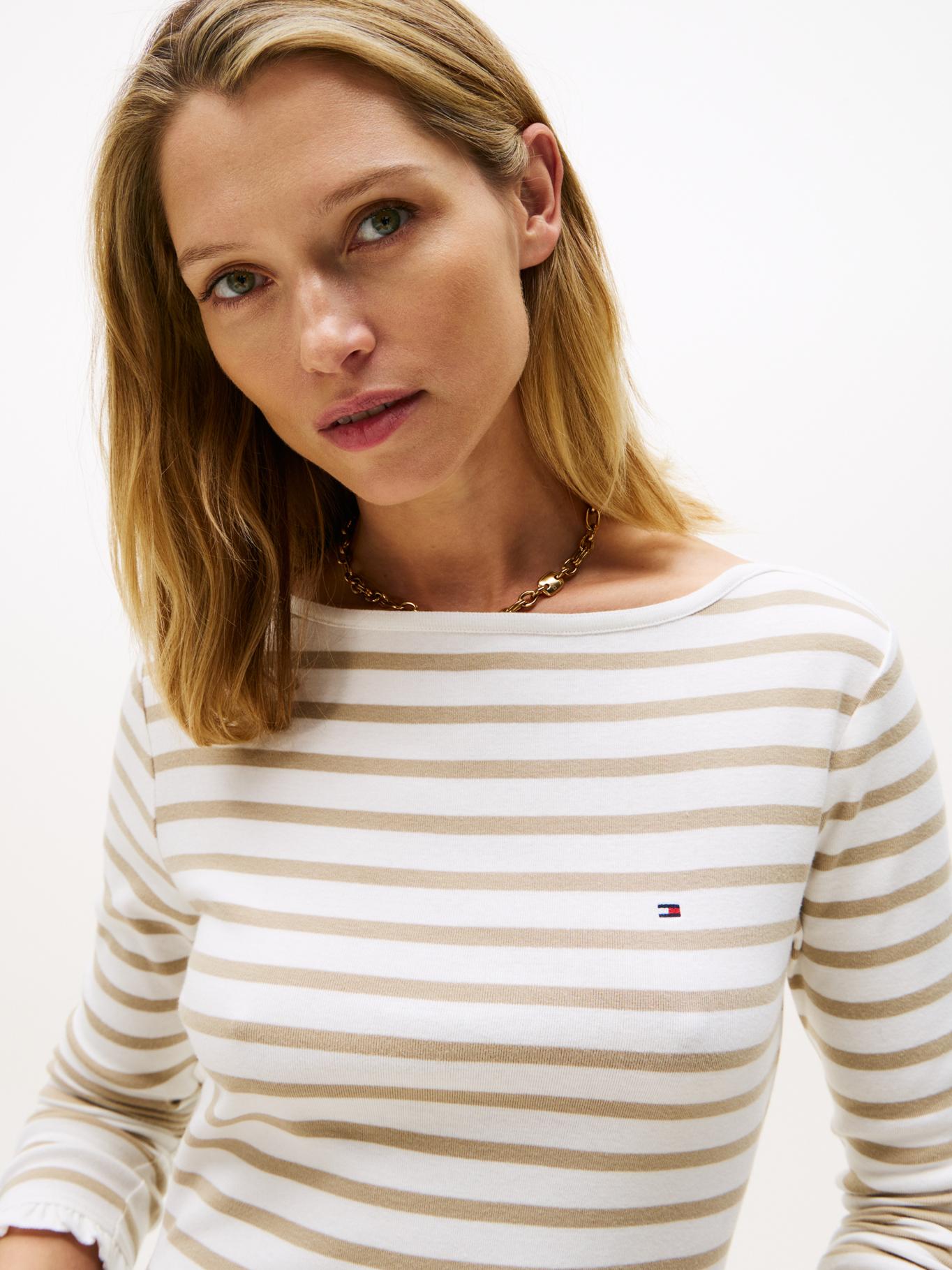 Saco Blanco De Cuello Barco Con Diseño De Rayas