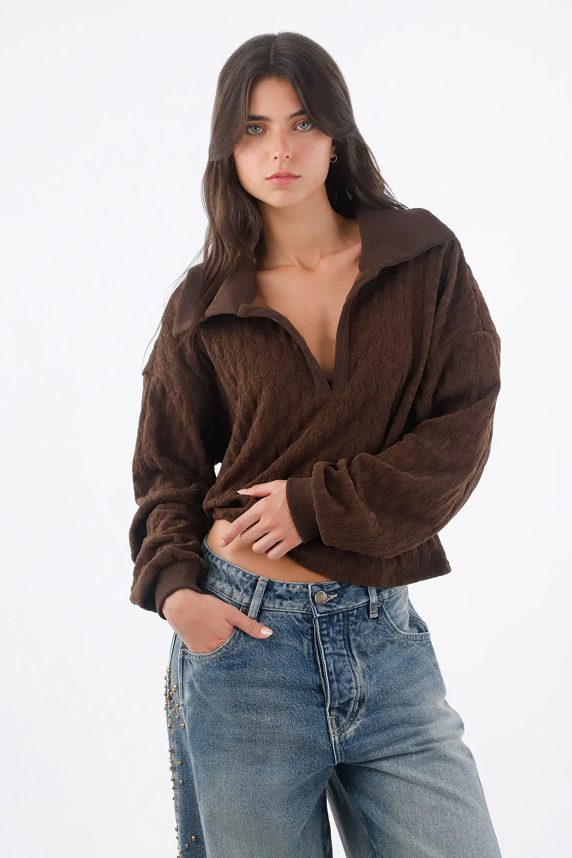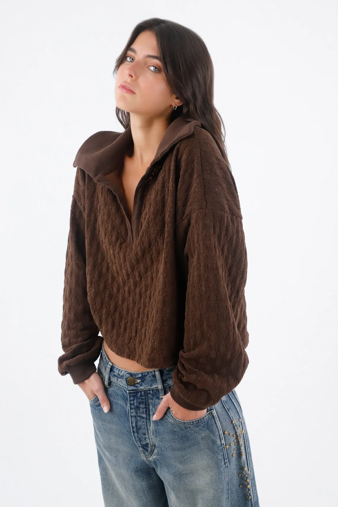 Buzo Para Mujer En Algodón Marrón Fit Relajado Texturizado