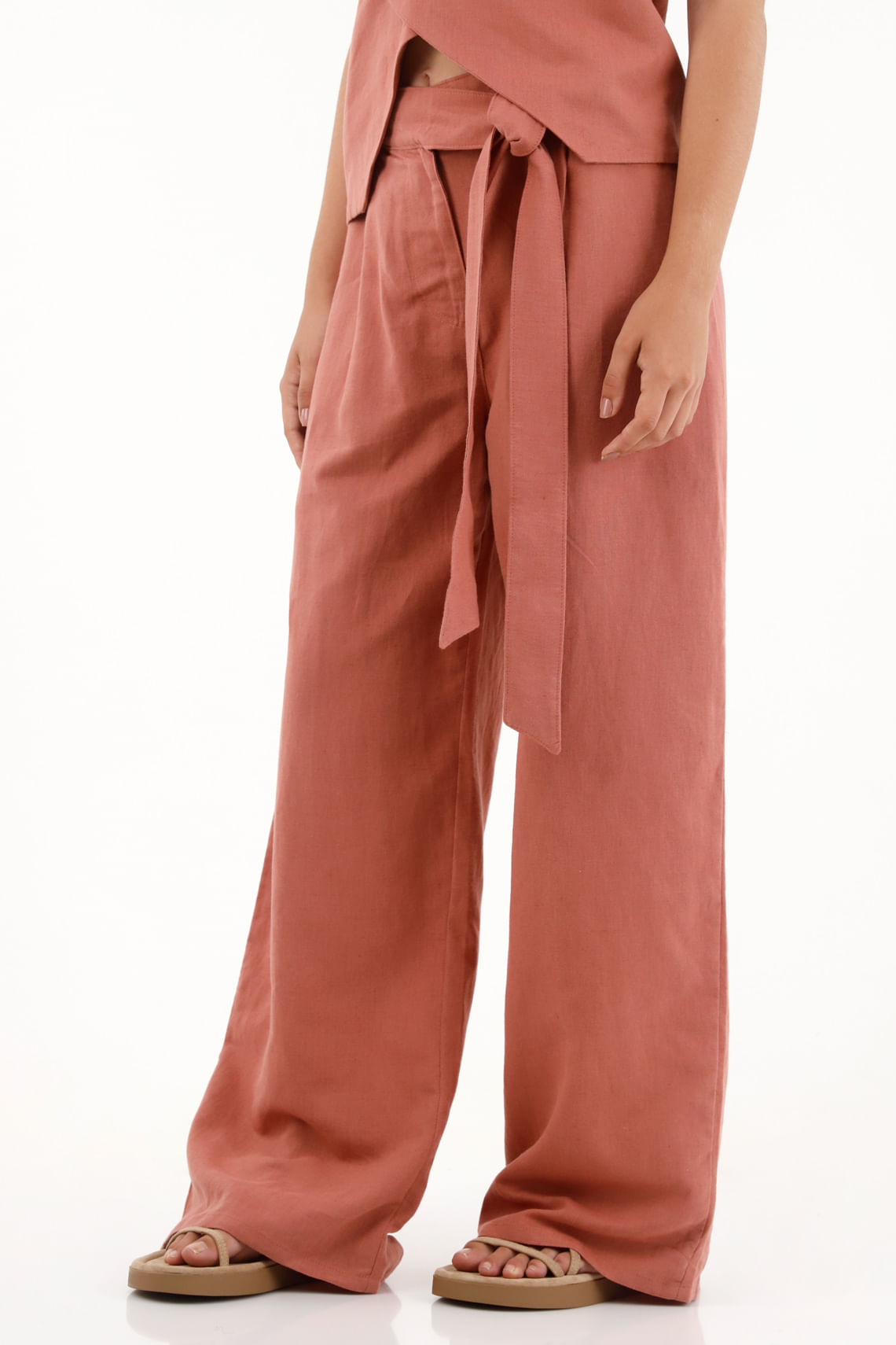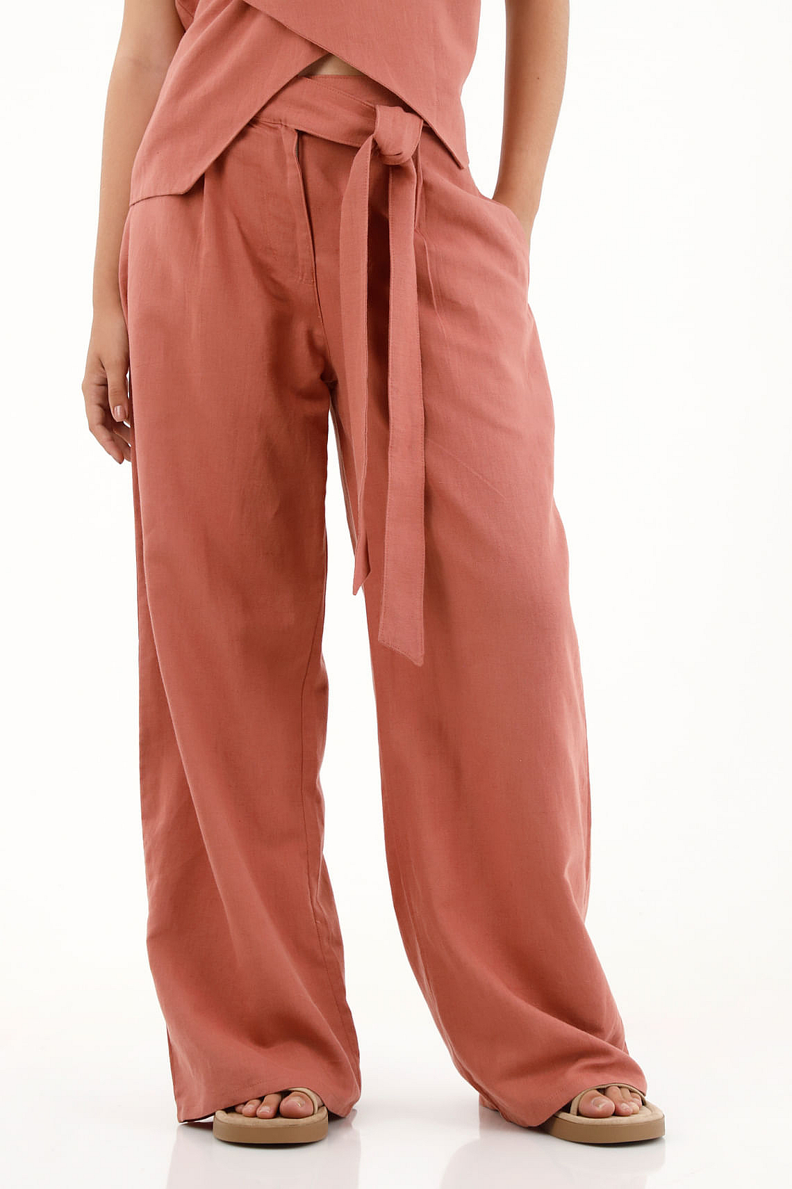 Pantalón Recto Con Ajuste En Costado Naranja Para MujerTalles disponibles