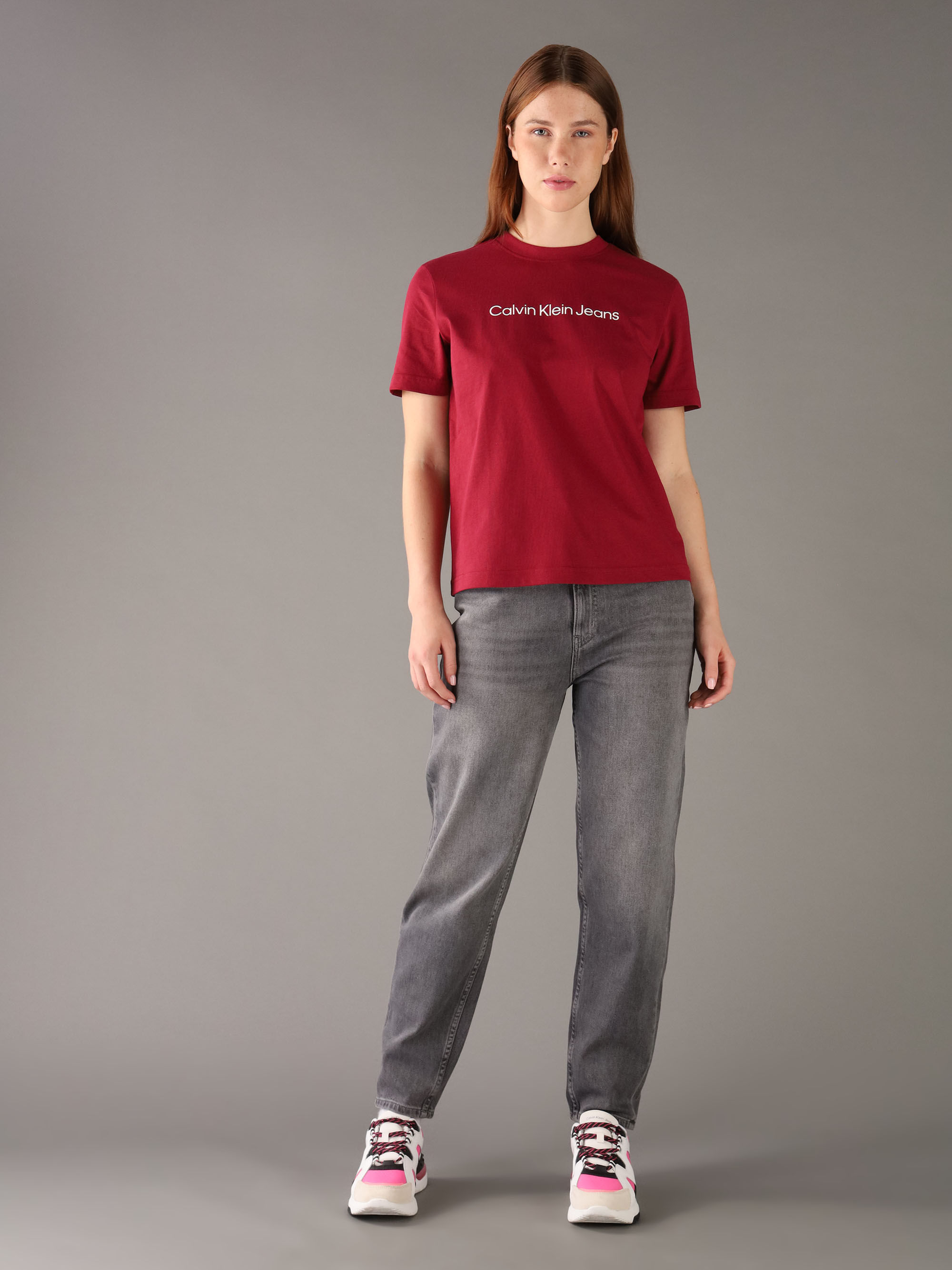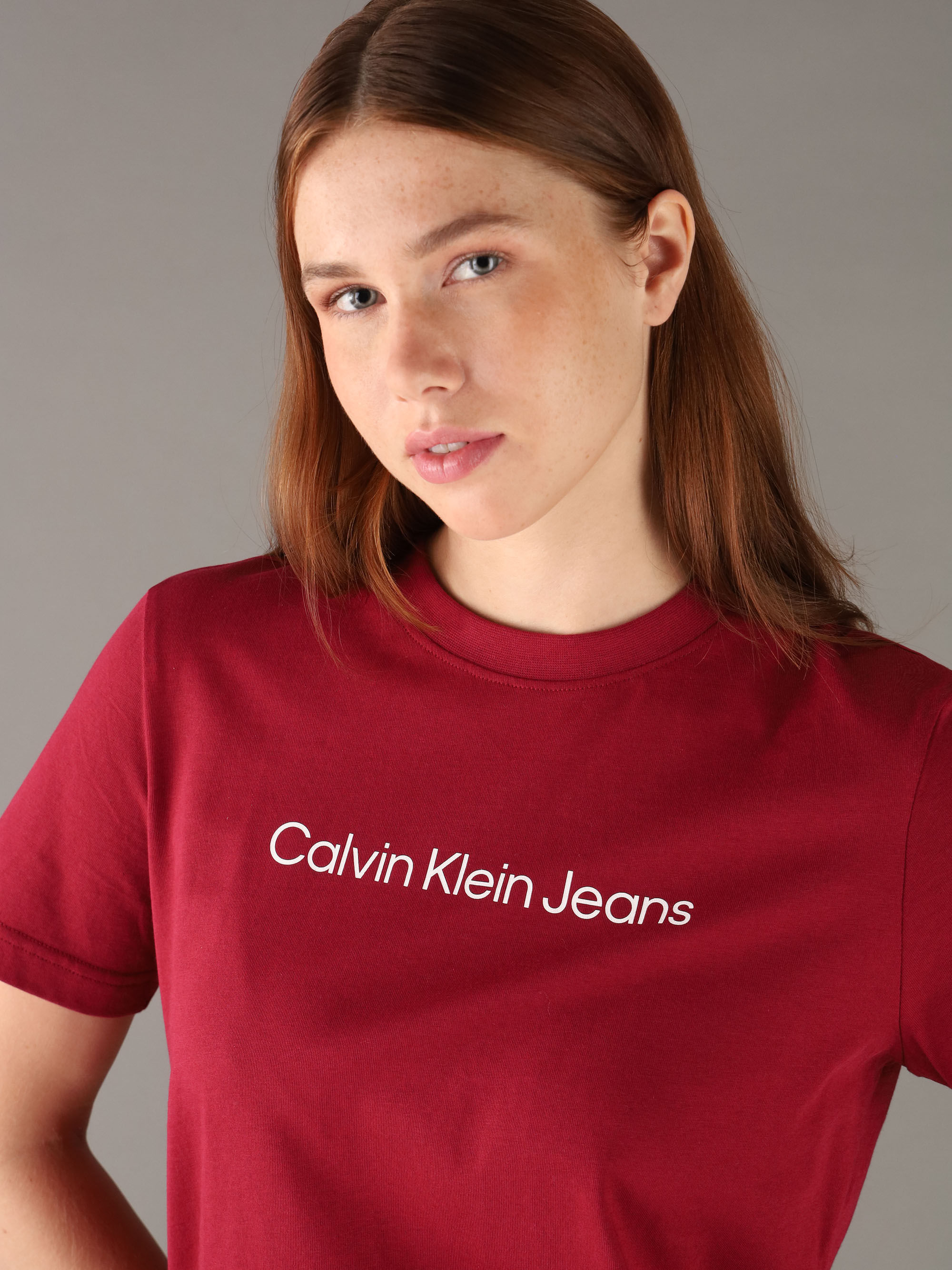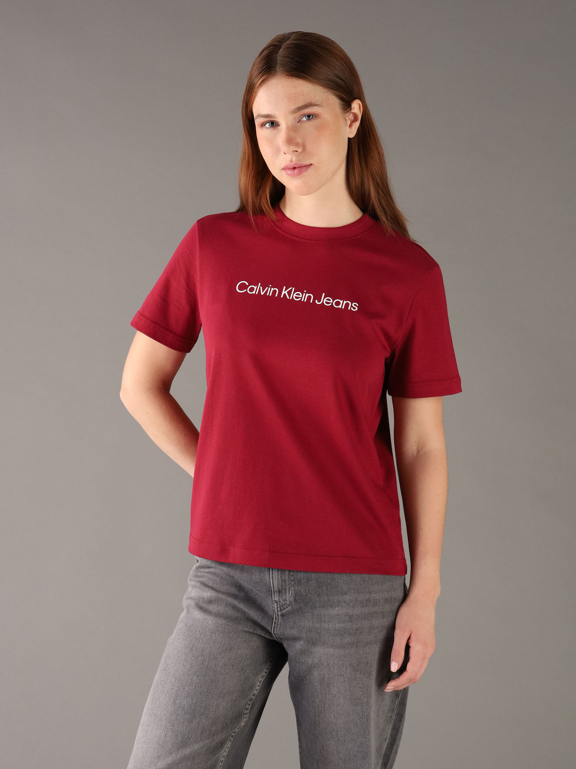 Playera Calvin Klein Con Logotipo Estampado Mujer RojoTalles disponibles