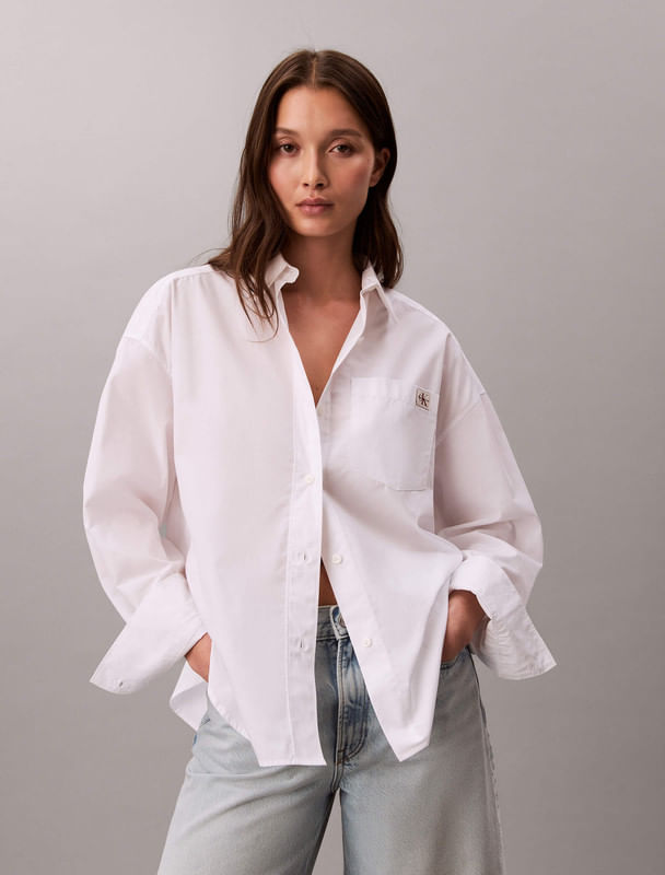 Camisa Calvin Klein Poplin Cotton Cropped Mujer BlancoTalles disponibles