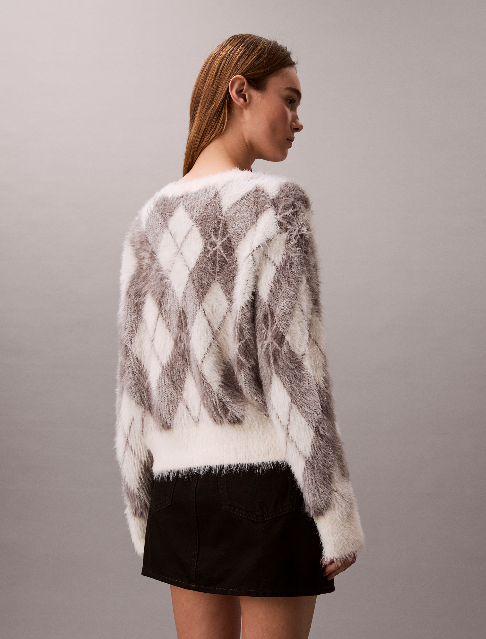 Suéter Calvin Klein Argyle Fuzzy Novelty Mujer Blanco