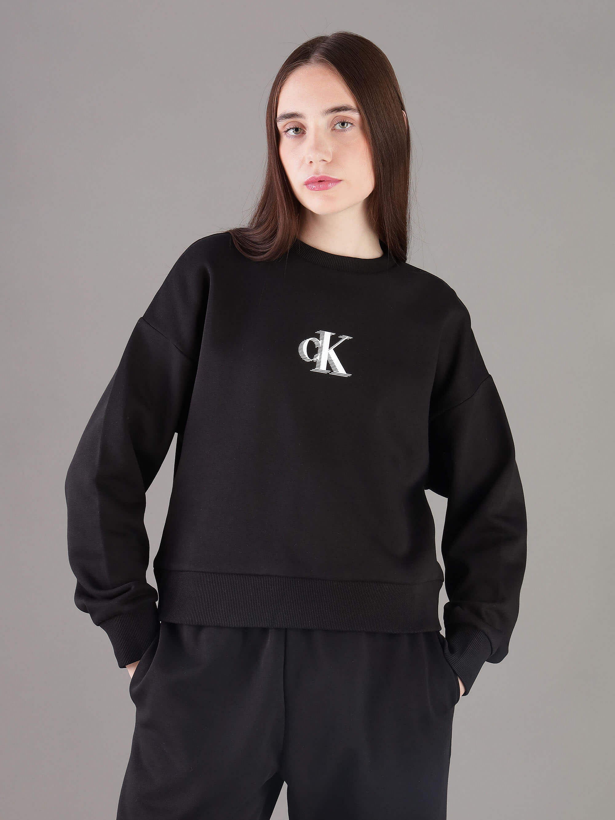 Sudadera Calvin Klein Jeans Monograma Plastificado Mujer Negro
