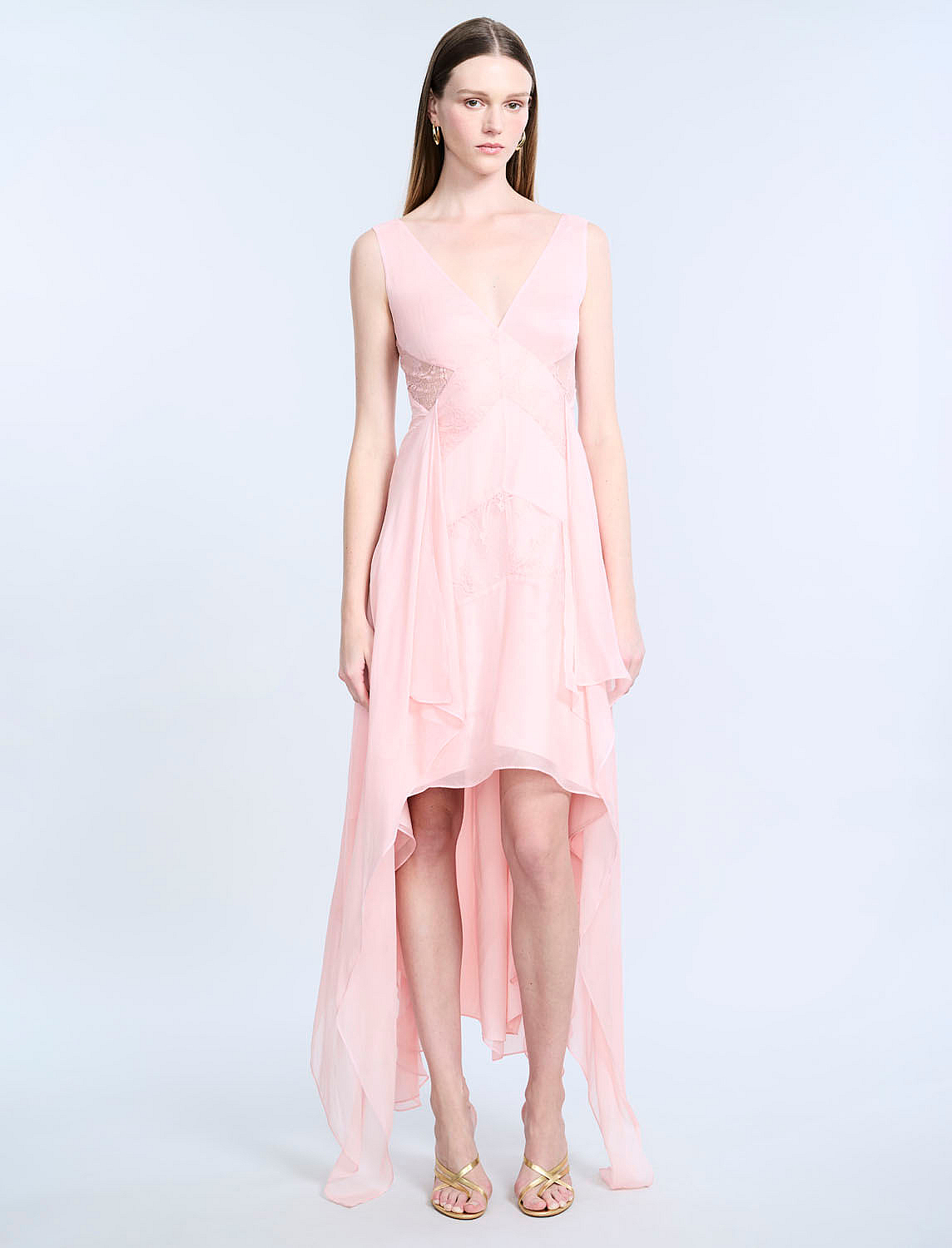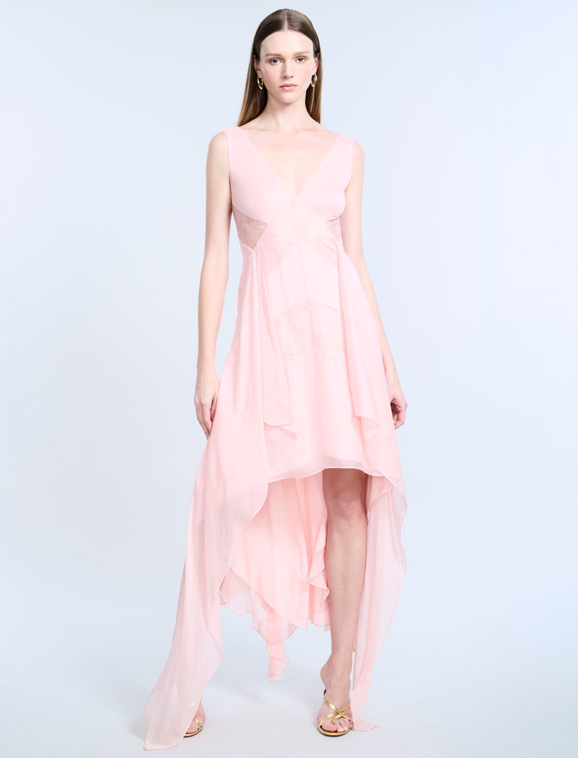 Vestido Fluido High And Low De Encaje Chiffon