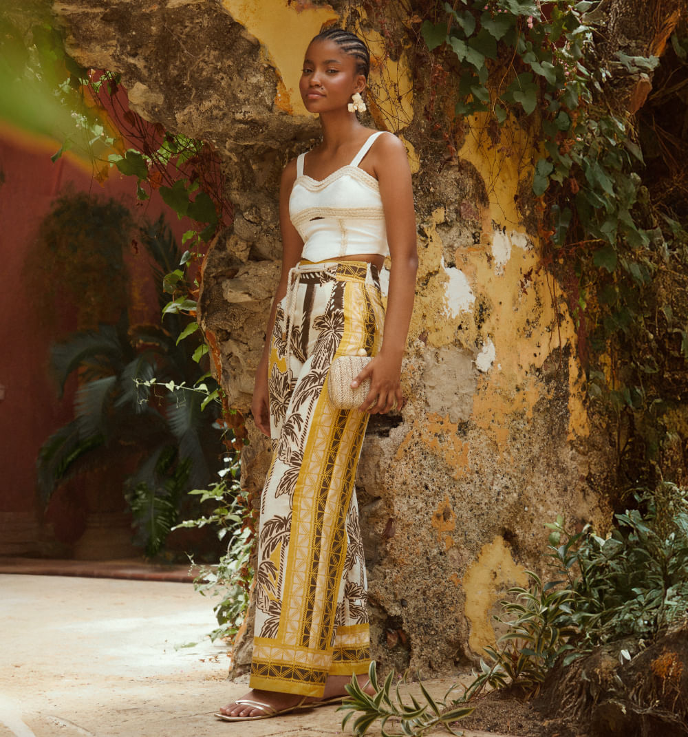 Pantalon Palazo Tiro Alto Con Cordon