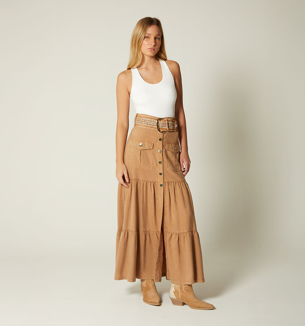 Falda Larga Correa Color Para MujerTalles disponibles