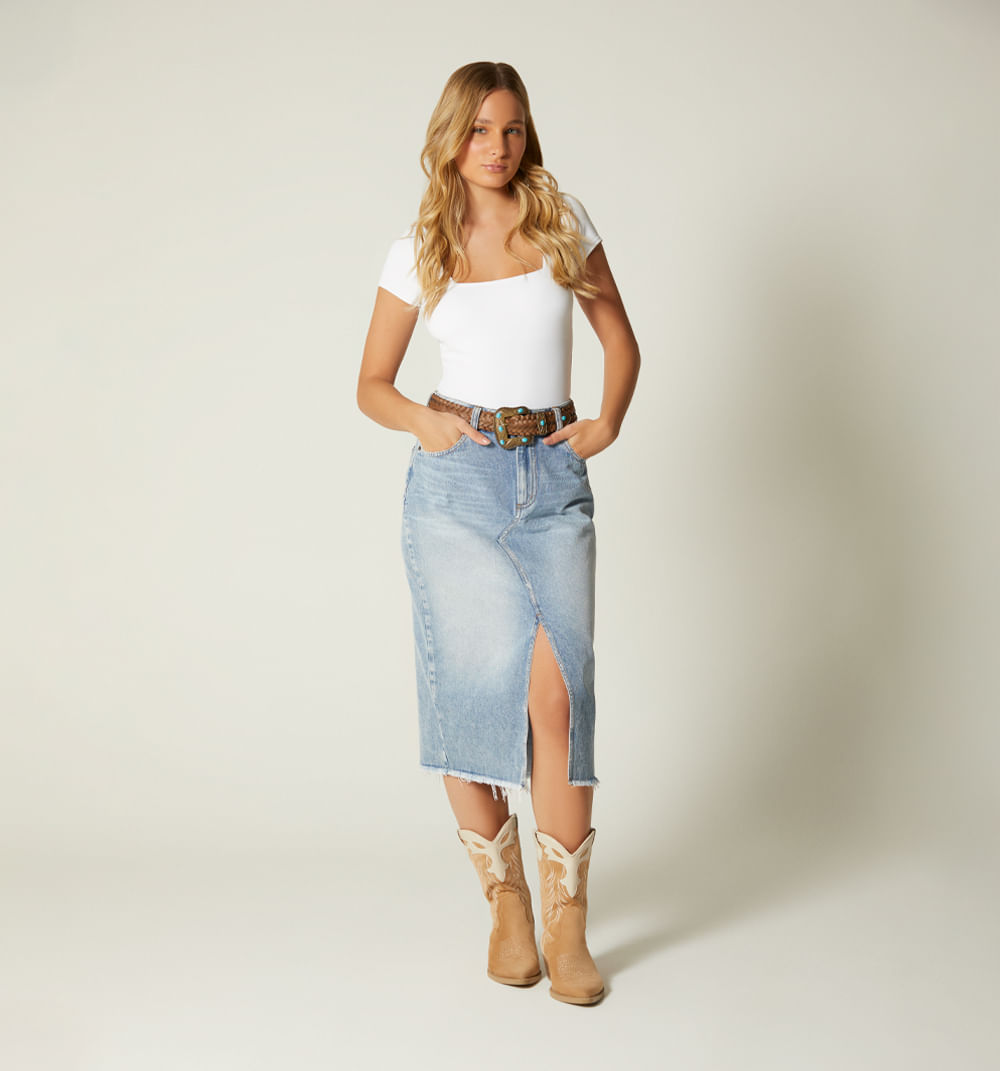 Falda Midi Cintura Con Abertura Y Correa