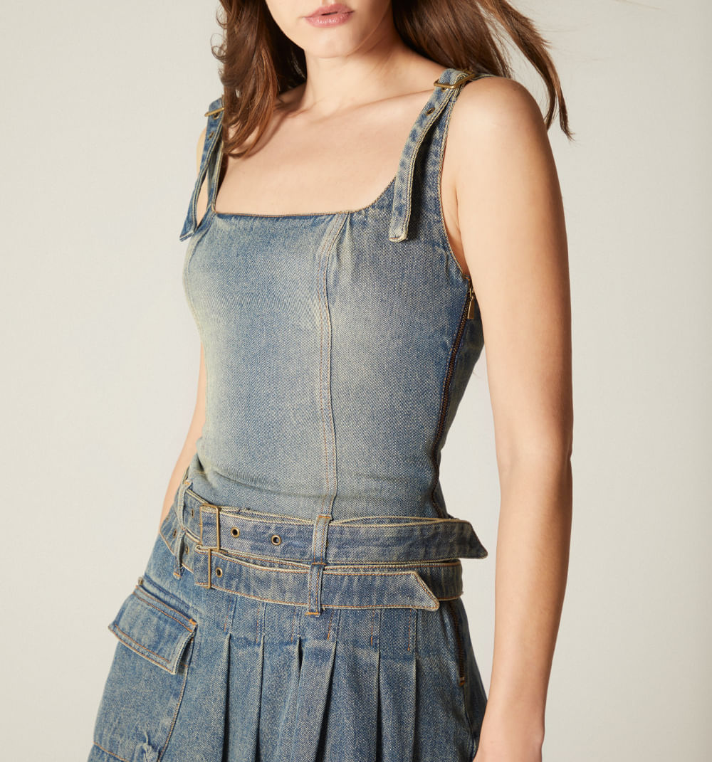 Vestido Tira Con Hebillas Y Ojaletes Fal