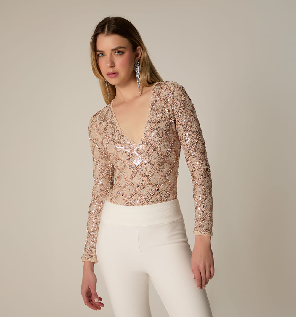 Body Manga Larga Lentejuela