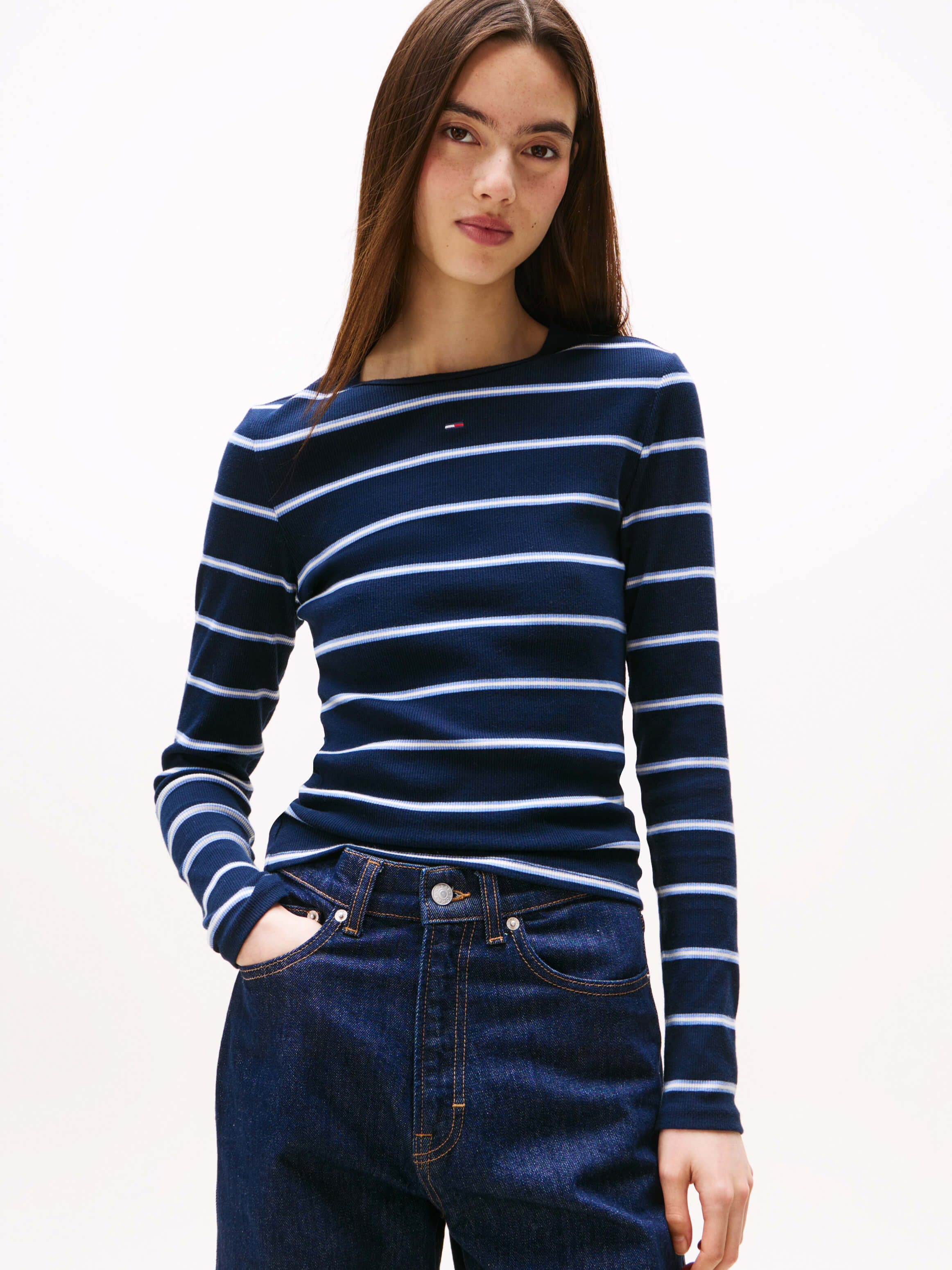Playera Acanalada Slim De Manga Larga De Mujer Tommy Jeans