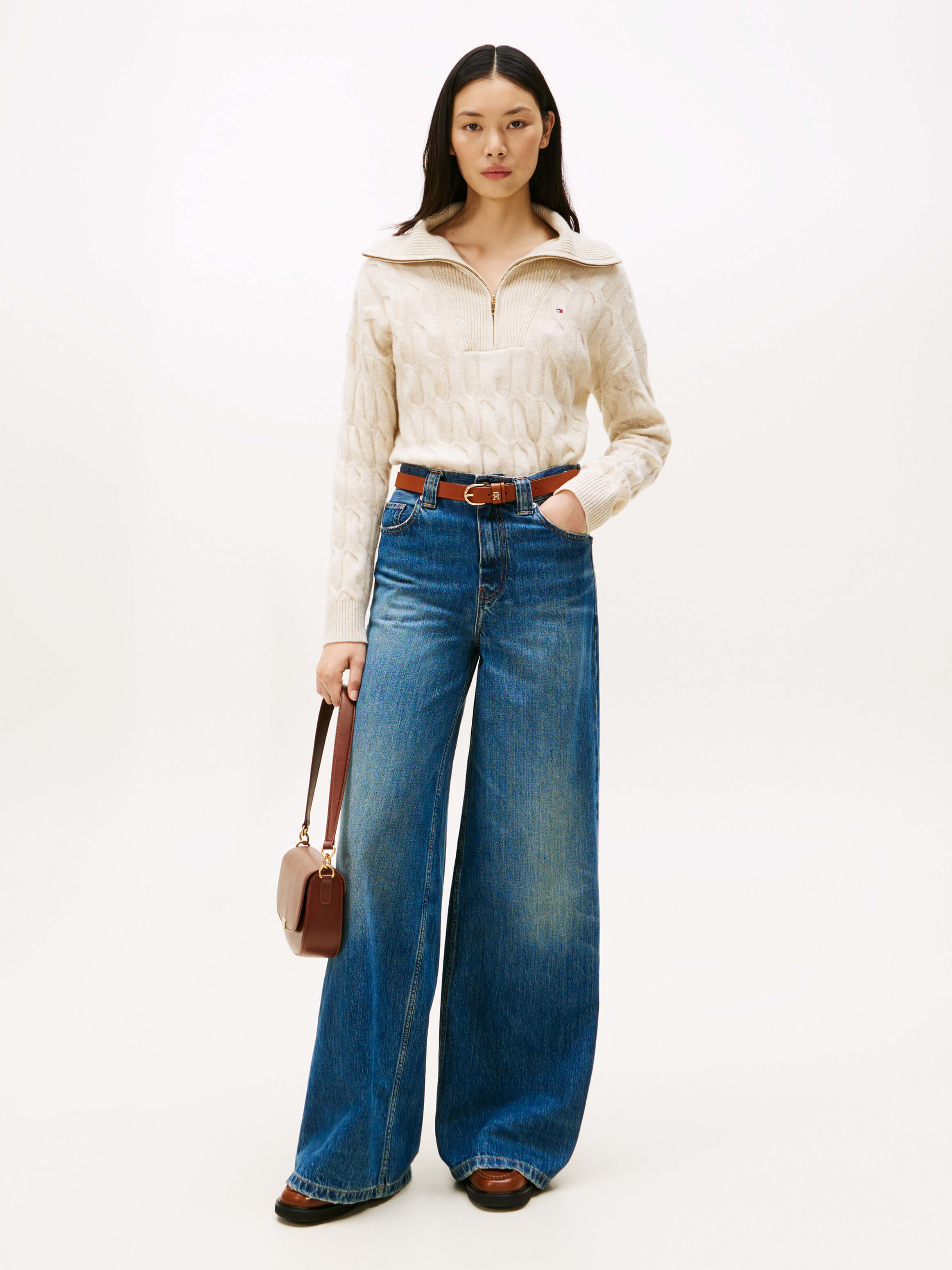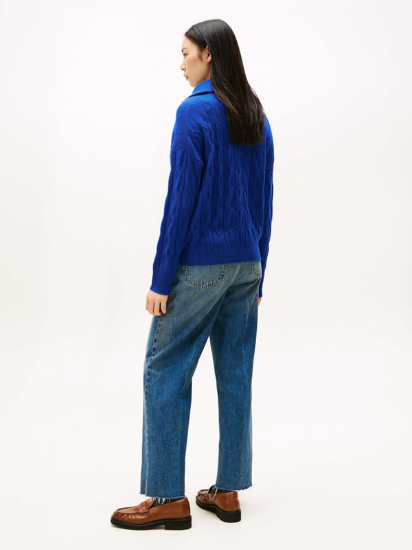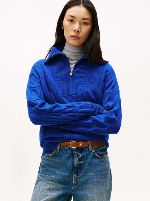 Suéter De Punto Trenzado Suave Con Media Cremallera De Mujer Tommy HilfigerTalles disponibles
