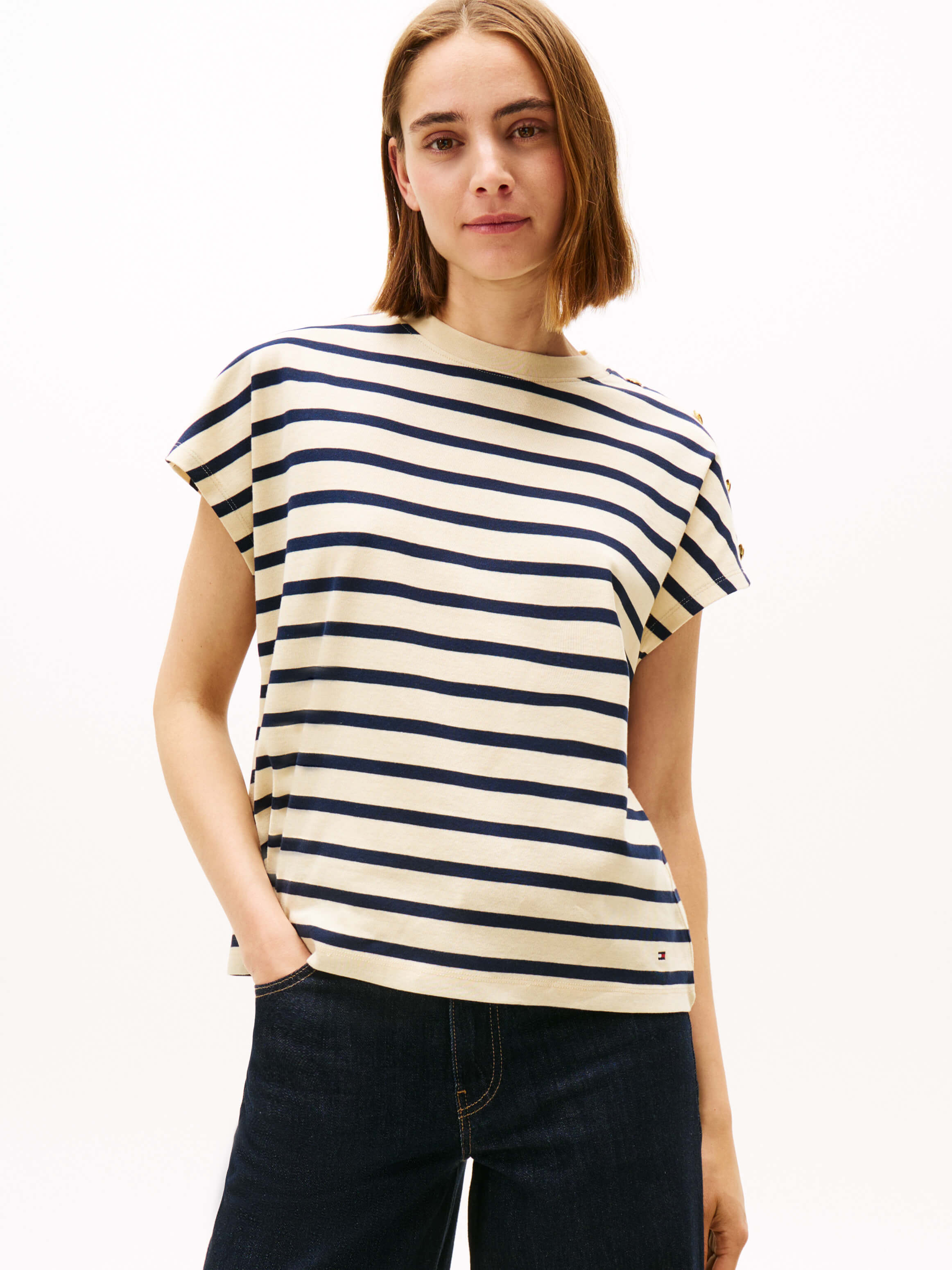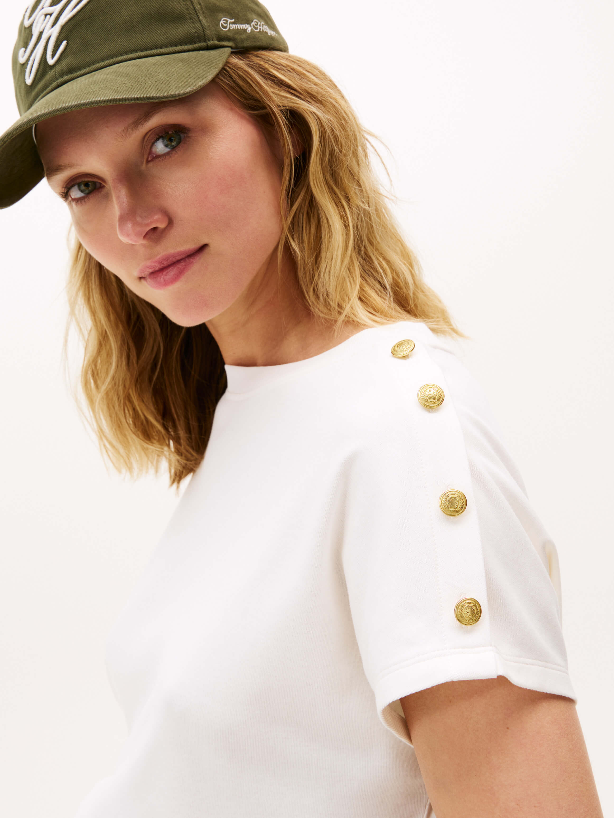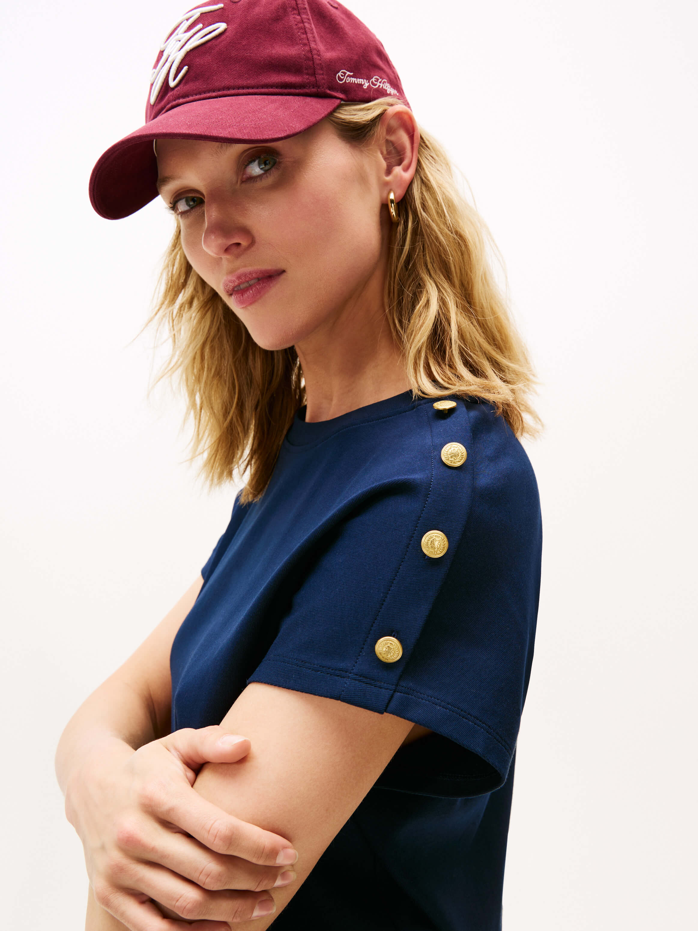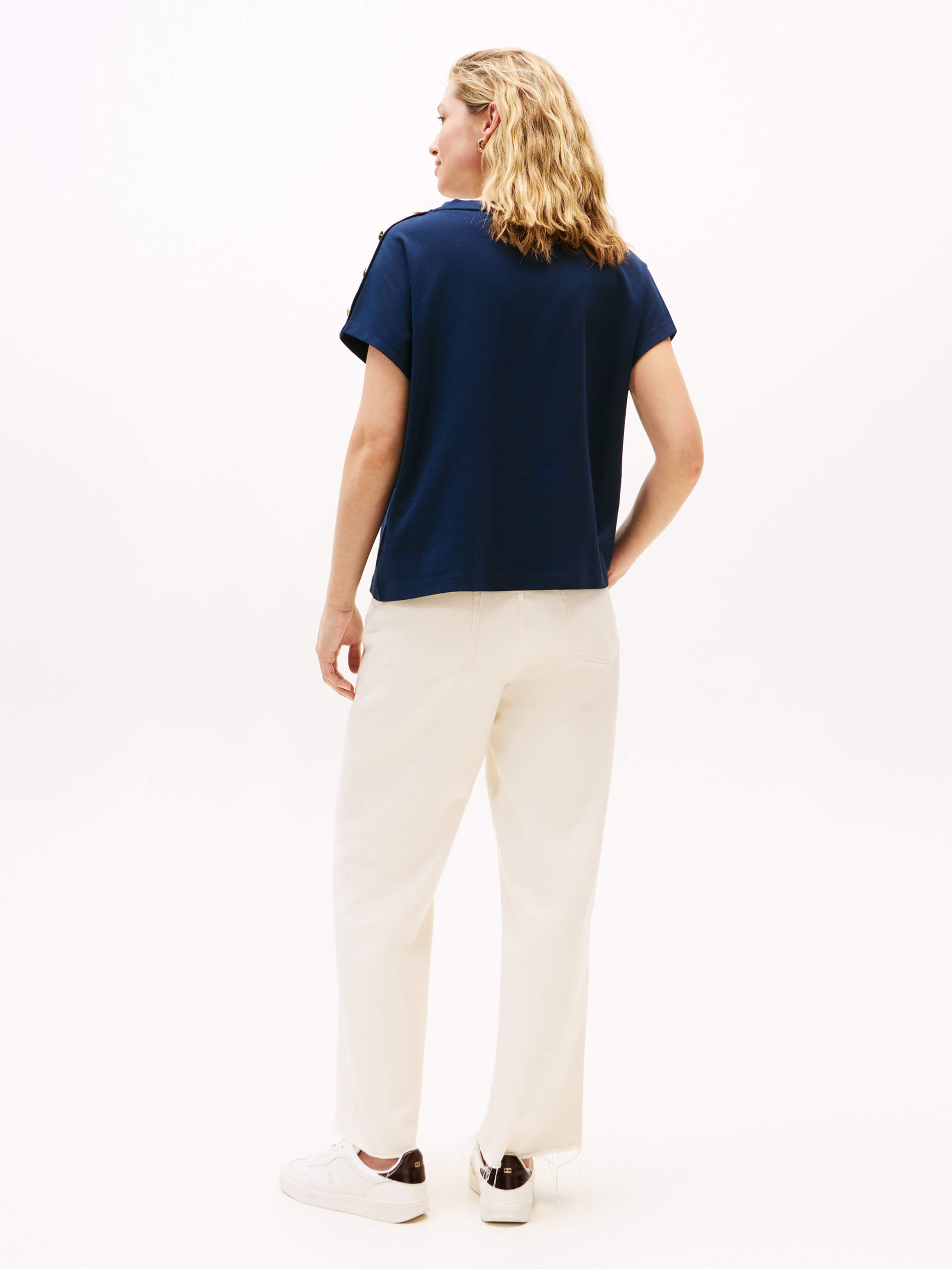 Playera Con Botones Dorados En El Hombro De Mujer Tommy Hilfiger