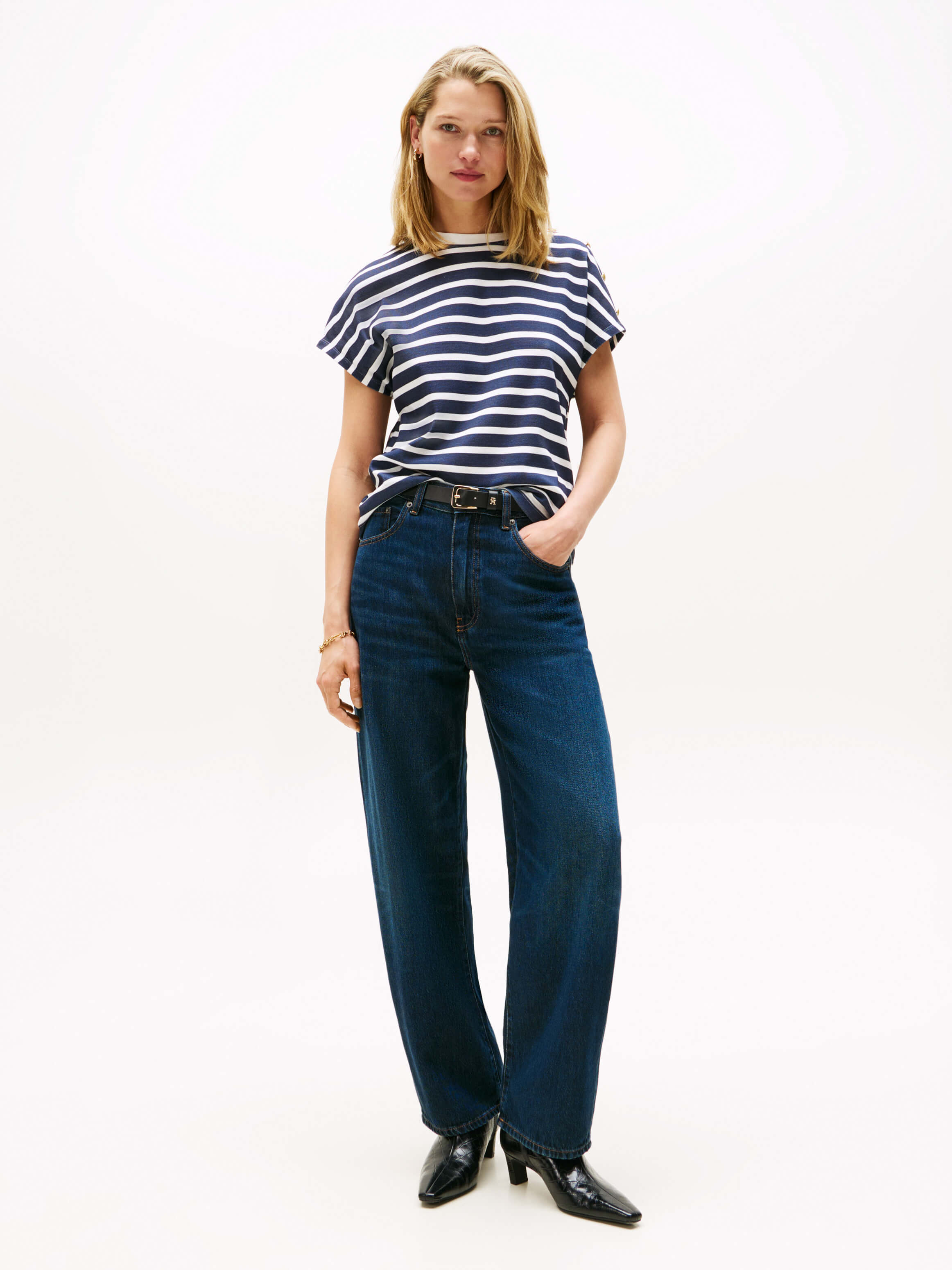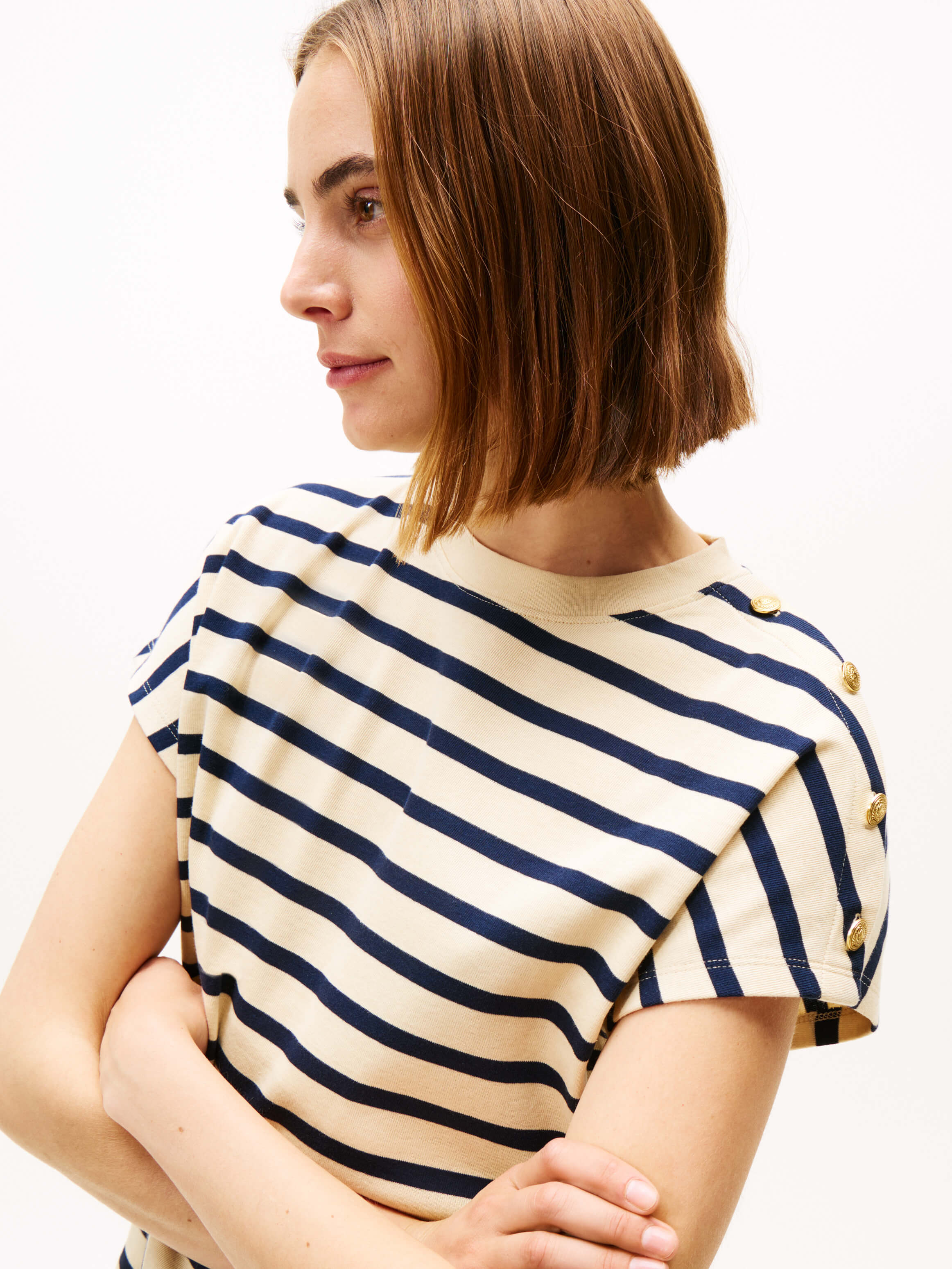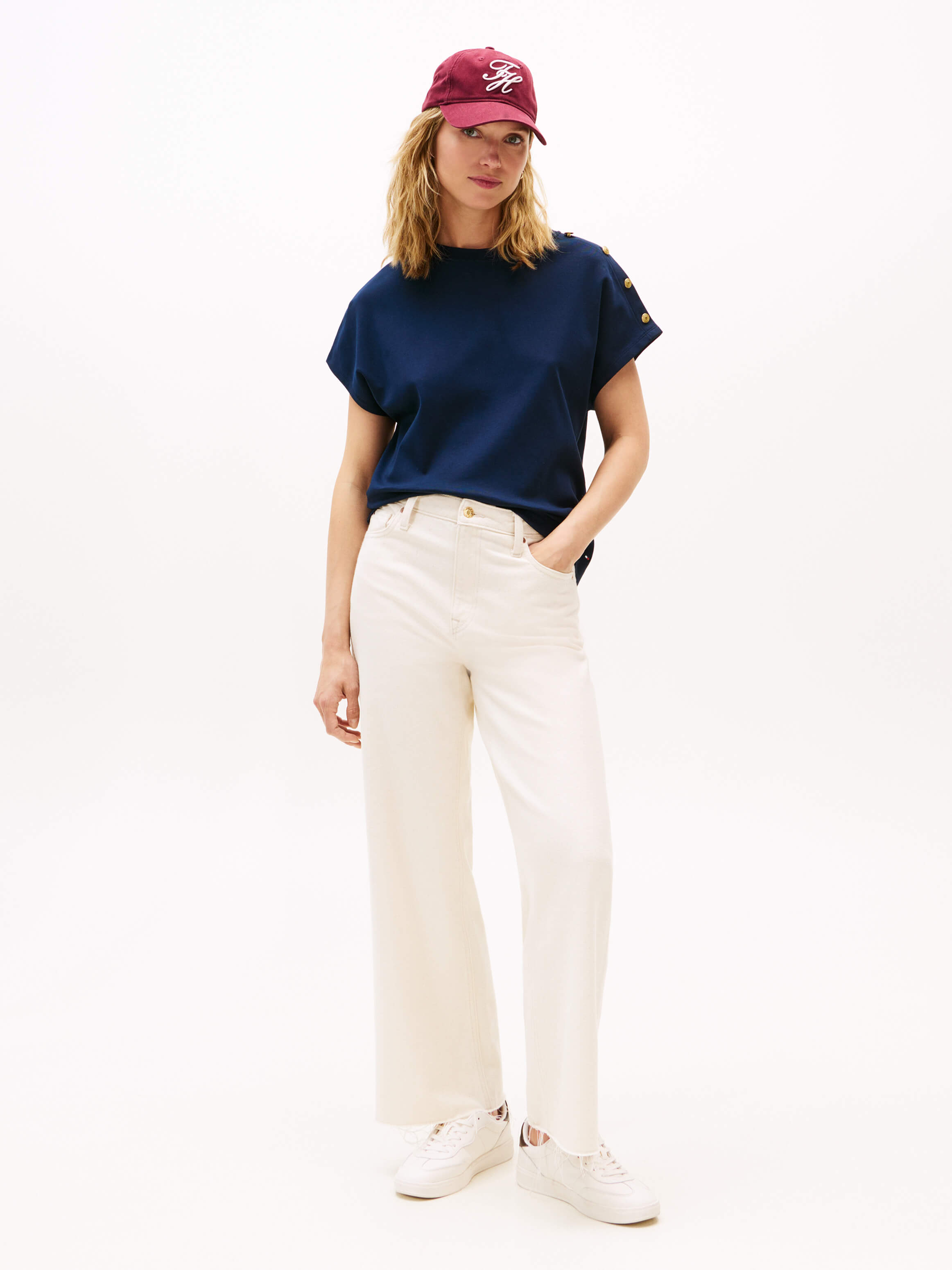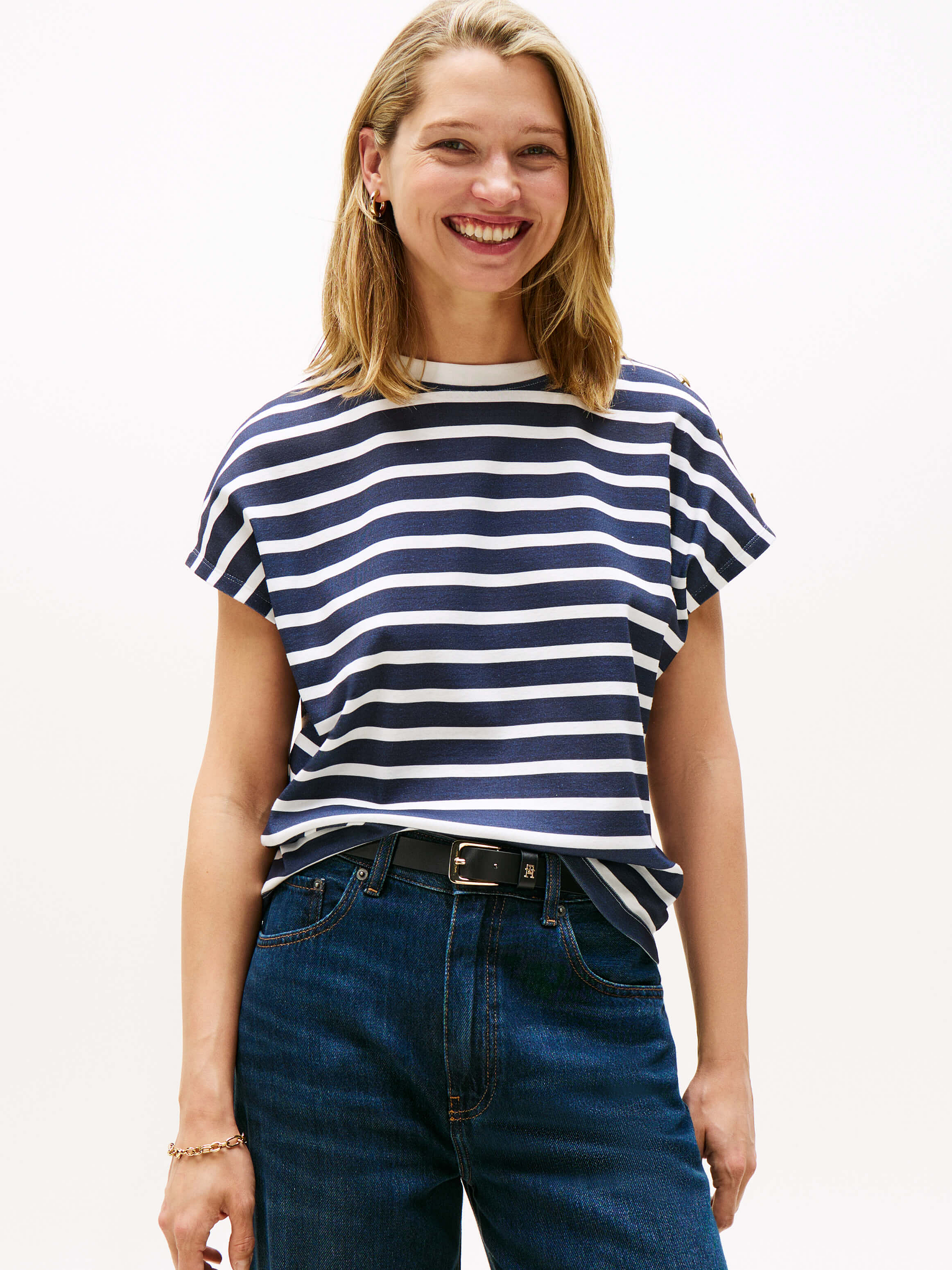 Playera Con Botones Dorados En El Hombro De Mujer Tommy Hilfiger