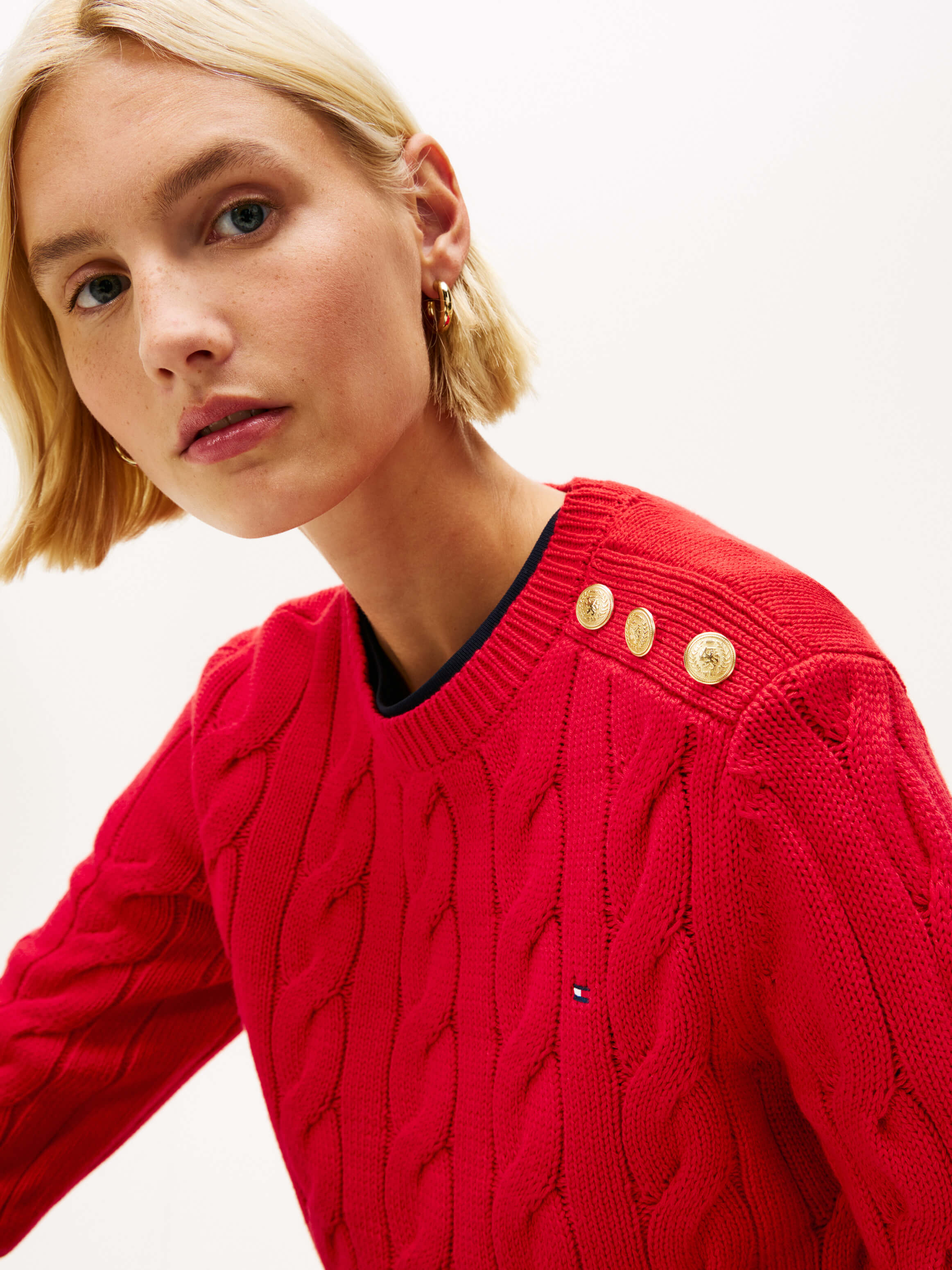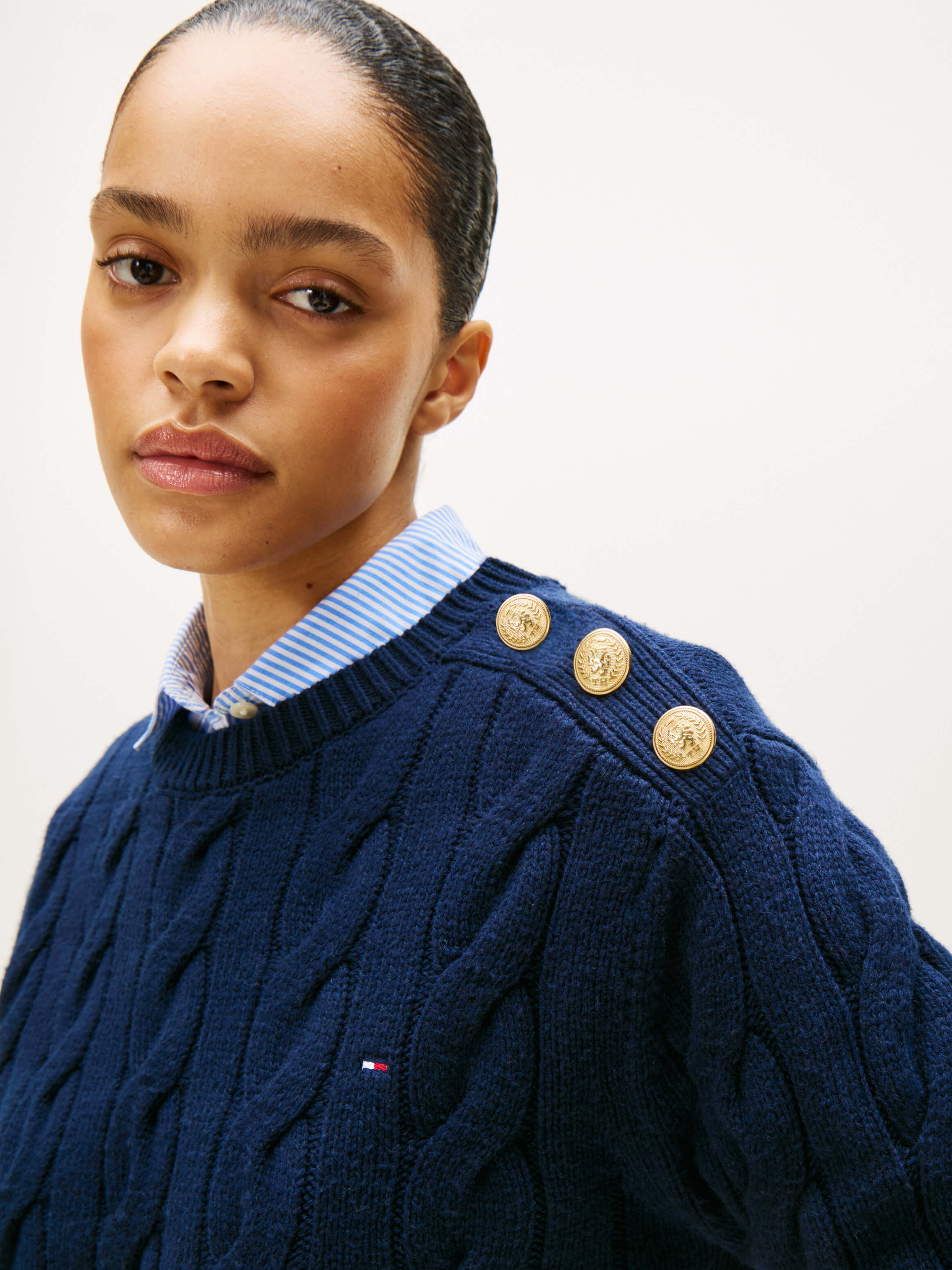 Suéter Cableado Con Botones Decorativos De Mujer Tommy HilfigerTalles disponibles