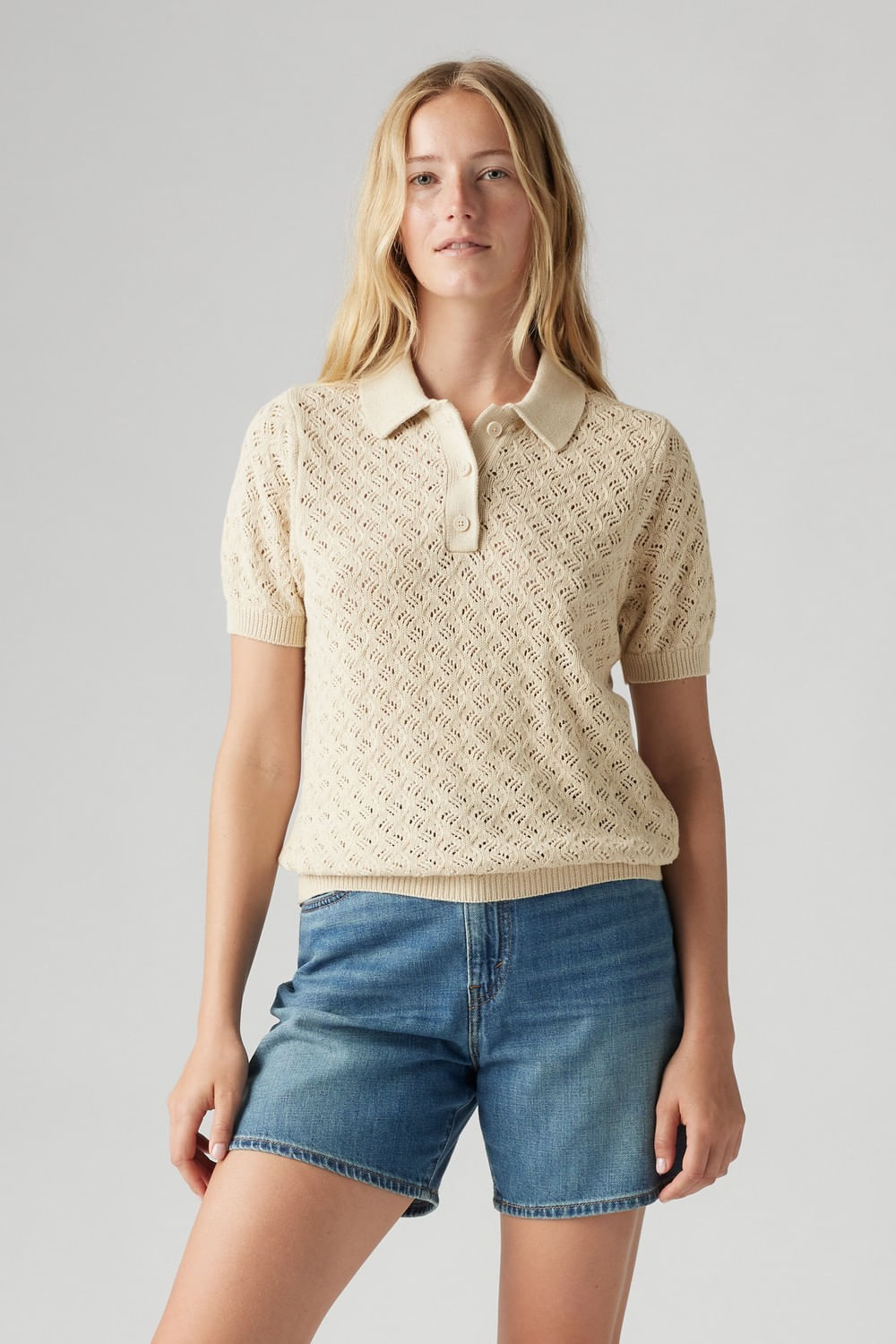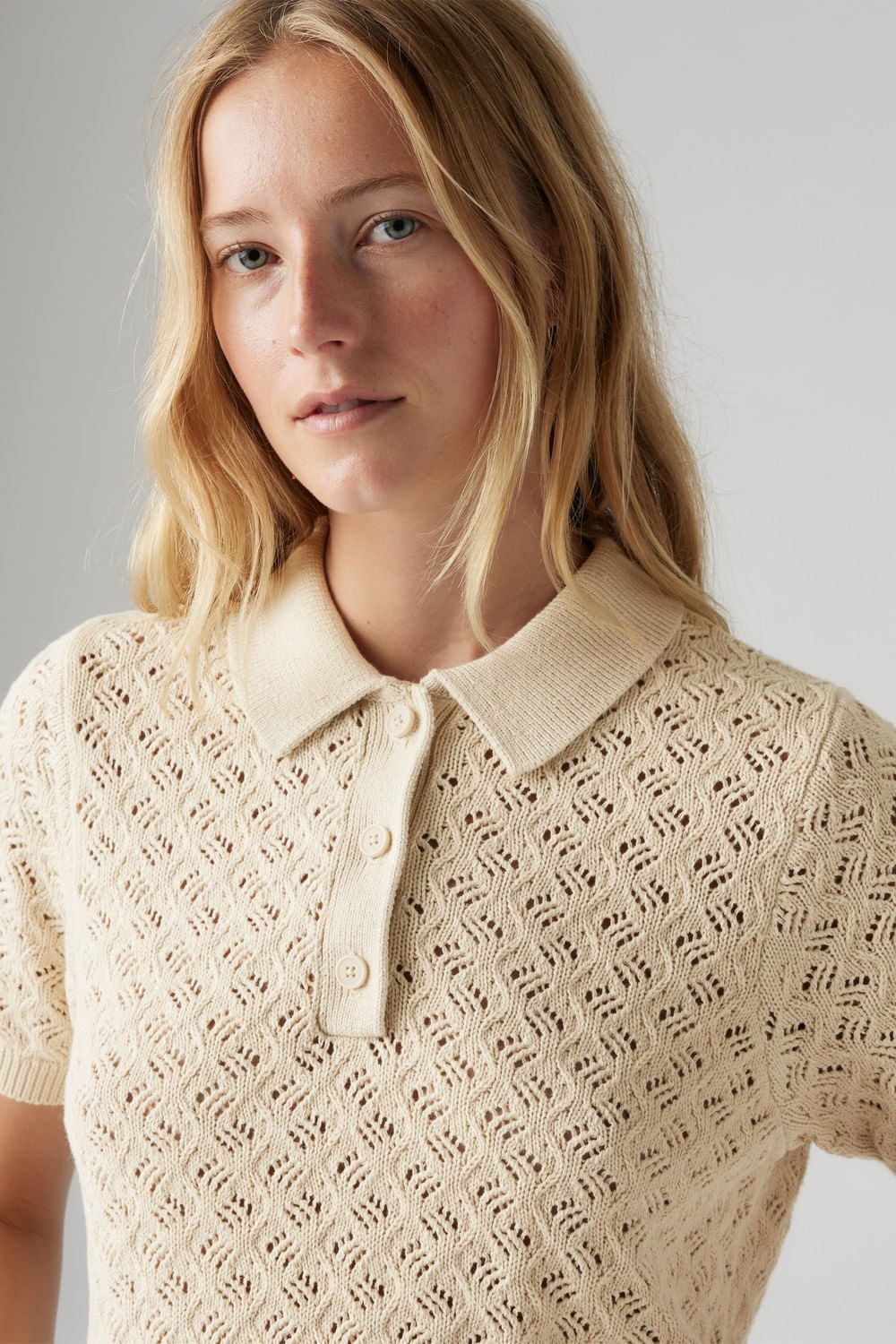 Lavender Pointelle Polo OatmealTalles disponibles